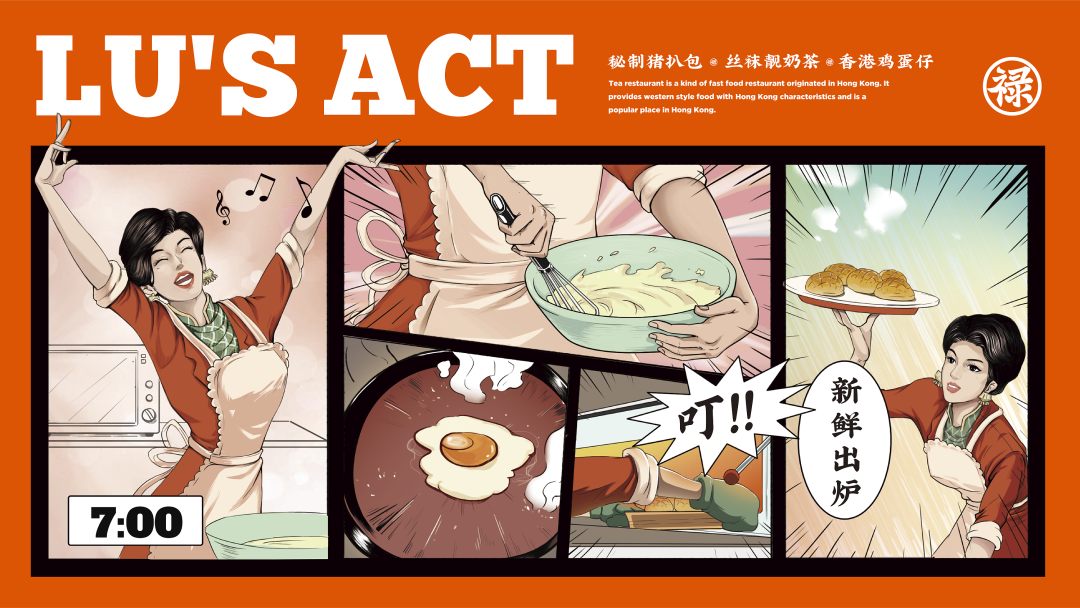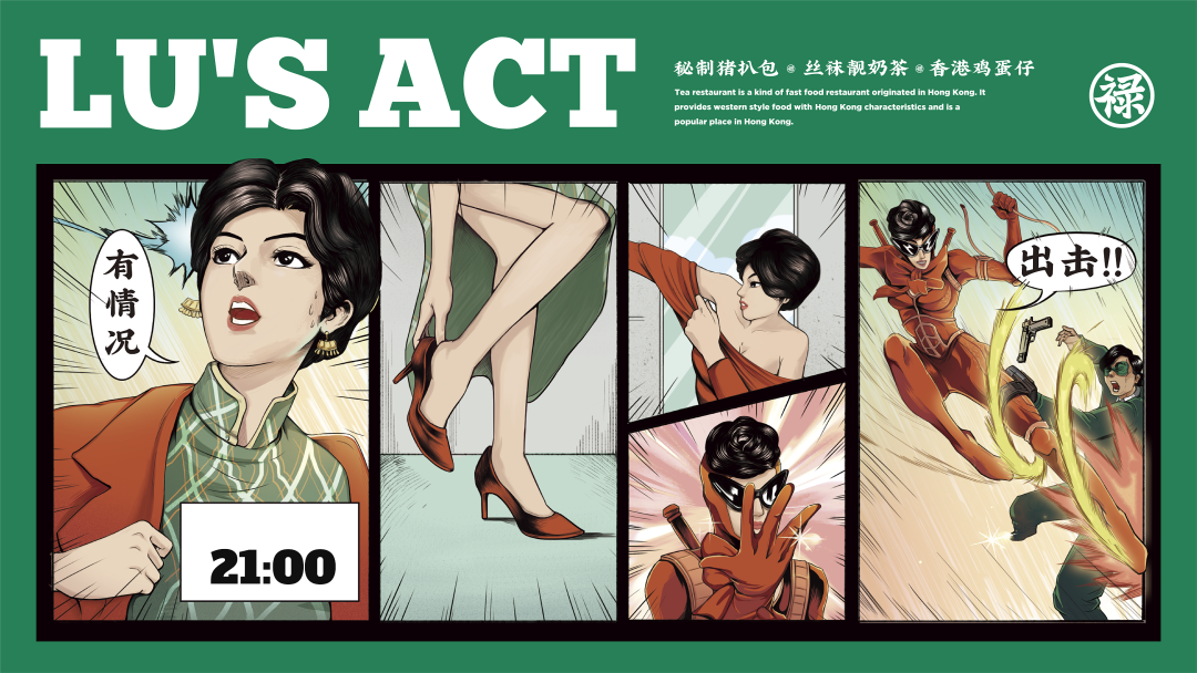 设计参考了香港著名漫画家黄玉郎的画风去打造的禄嫂的一系列漫画,把禄嫂白天和黑夜两个不同场景塑造禄嫂的神秘身份,白天是茶冰厅老板,晚上是特工006去警恶惩奸去引发一系列的故事线。延续了港式的很多元素并把它们与禄嫂链接起来,让禄嫂这个品牌既具备港风也有很强烈的人物性格。
