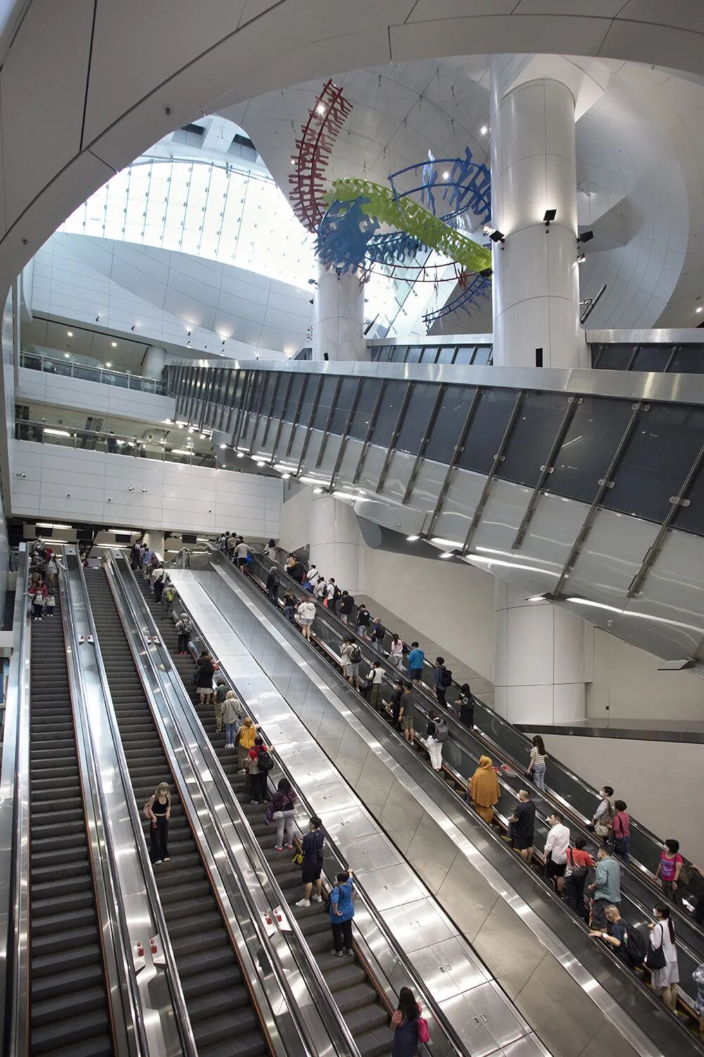 乘客对扩建工程最直观的体验莫过于乐礼街E出口的大型中庭空间。车站加装了18组自动扶梯,让乘客可以迅速到达不同线路月台。