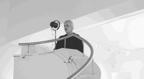 此外,panGenerator 还使用了 5 个扬声器,一个楼层配一个,从而实现声音的空间化,产生声音与球体一起坠落的错觉感。最后,团队在楼梯上作简单的光雕投影处理,它跟着球体的运动轨迹形成光影,作为末尾的点睛之笔,它让站在新爱乐音乐厅的人们更清晰地看到整个装置的交互过程。
