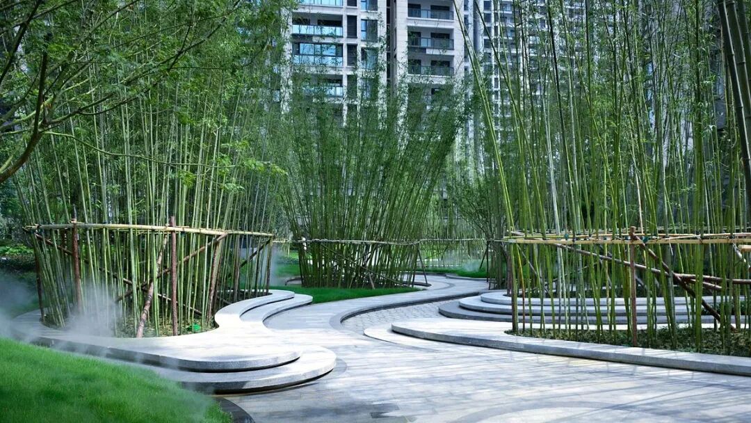 • 竹子的线条性强,能够形成通透立体的巷道/园路景观,也能起到增加景深的作用。