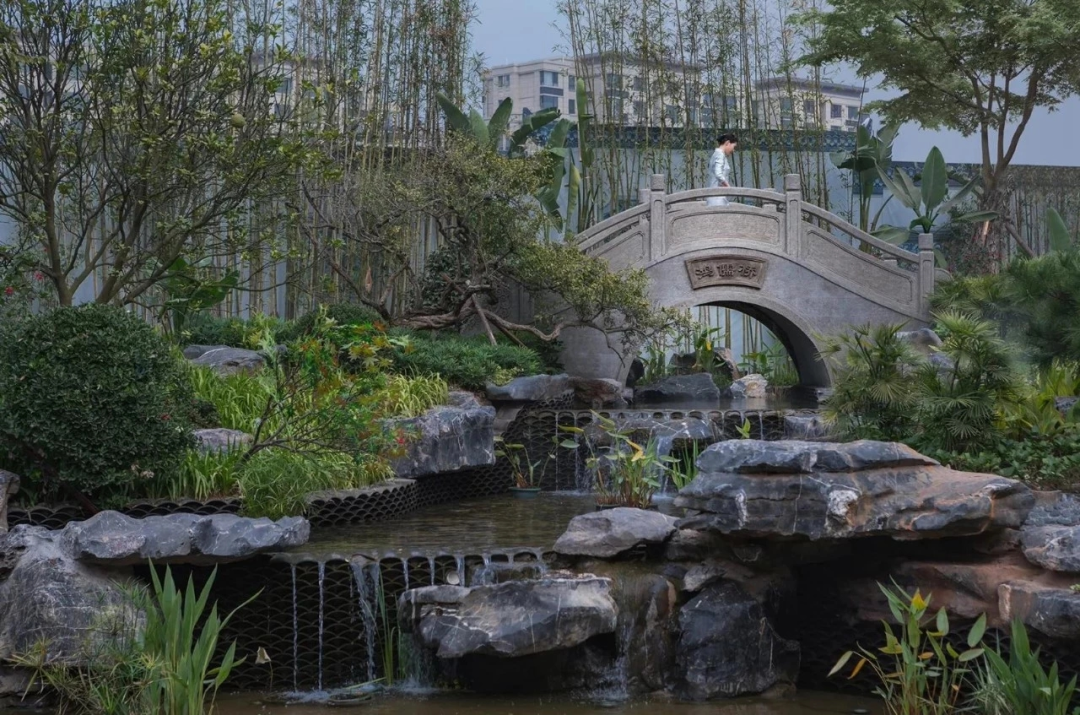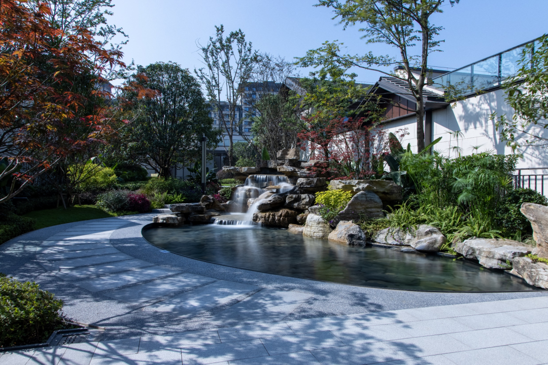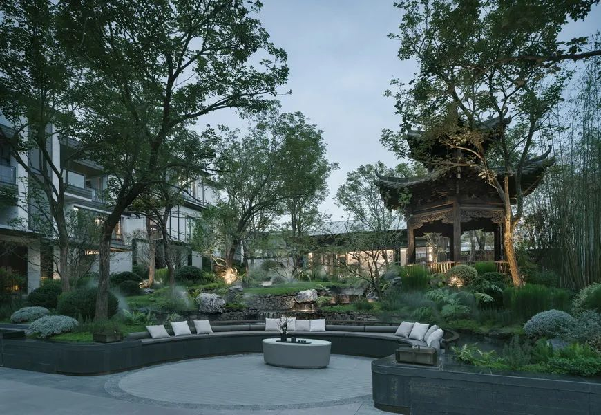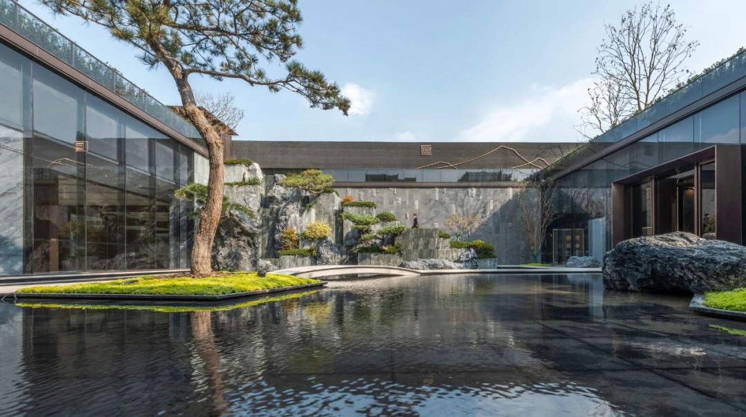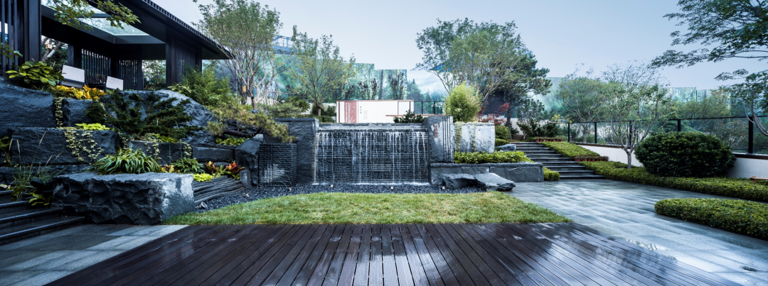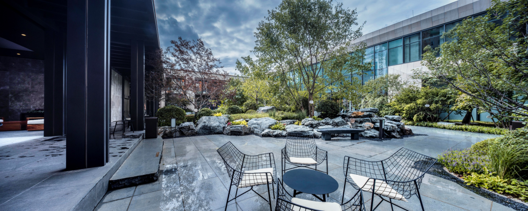 园林景观中的掇山叠石,是对自然山川的抽象模拟,同时讲求自然、融合、共存,因此现代手法演绎的叠石景观要注重与场域风格的整体综合考量,以现代的植物设计去构建自然山水的意境。