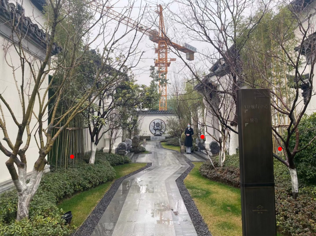 2.搭配手法——组团设计在道路转角;竹子或以点的形式作为组团中的层次,或以点成线的形式作为空间的衔接过渡;