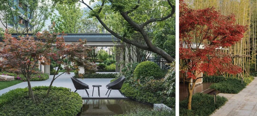 孤植作主景,可群植打造主题空间,也可作组团中的跳色与景石搭接,或以小杂木林的形式与水、石结合。