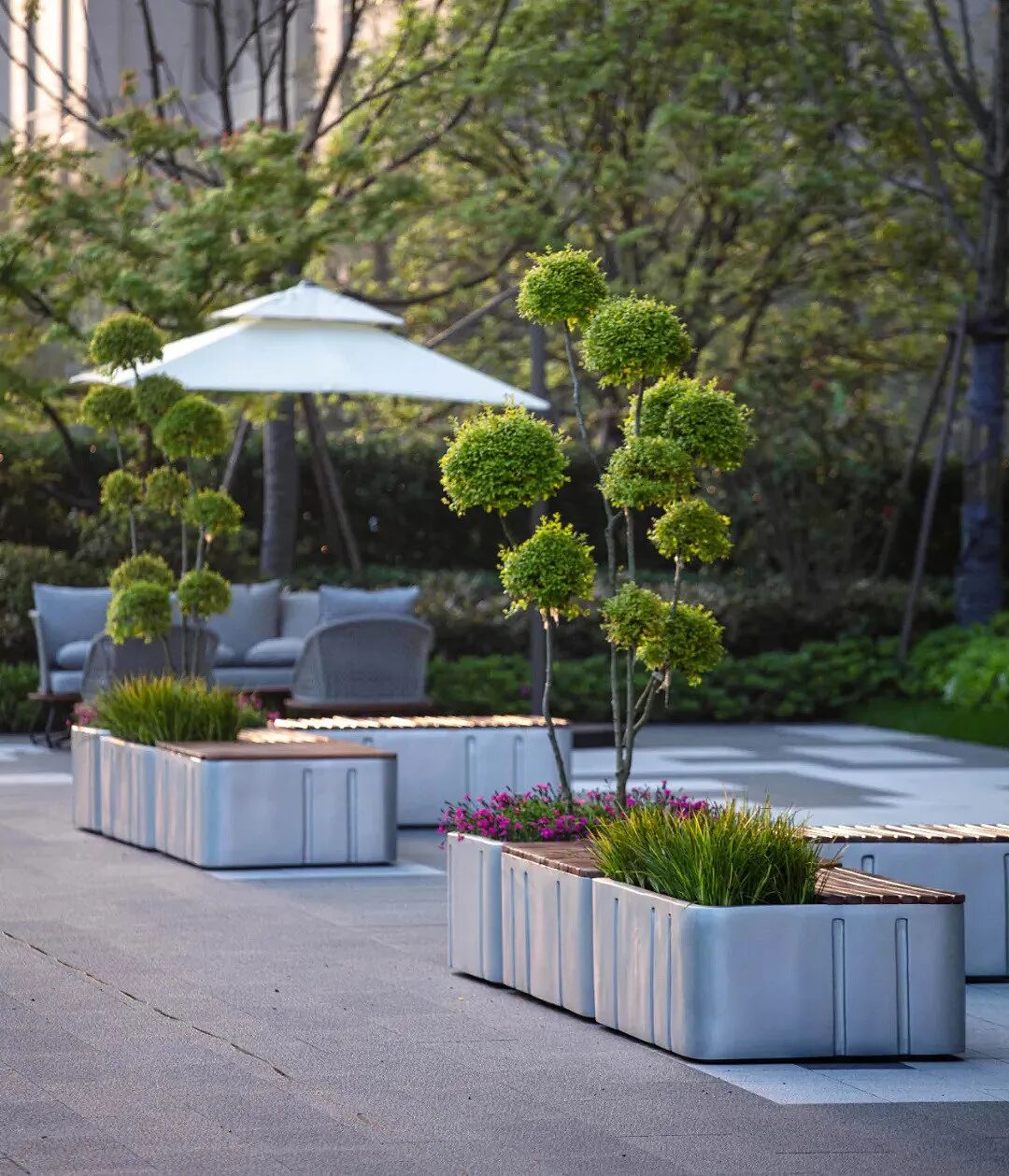 花箱具有即时性、装饰美化性,以及空间分割等功能,广泛应用在园区、商业、室内、市政等各个领域。