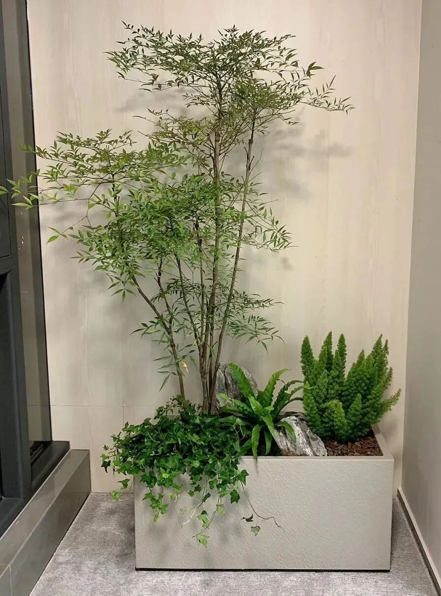 ① 以观叶植物为主,可搭配造型灌木做骨架,可局部点植观花花卉烘托气氛;表现风格多样,可热带风、可沙漠风等。