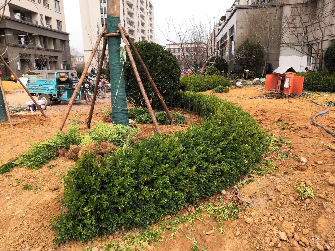 (4)最外侧的绿篱栽植,与地面成30°左右的角,保证绿篱和地面的贴合效果;