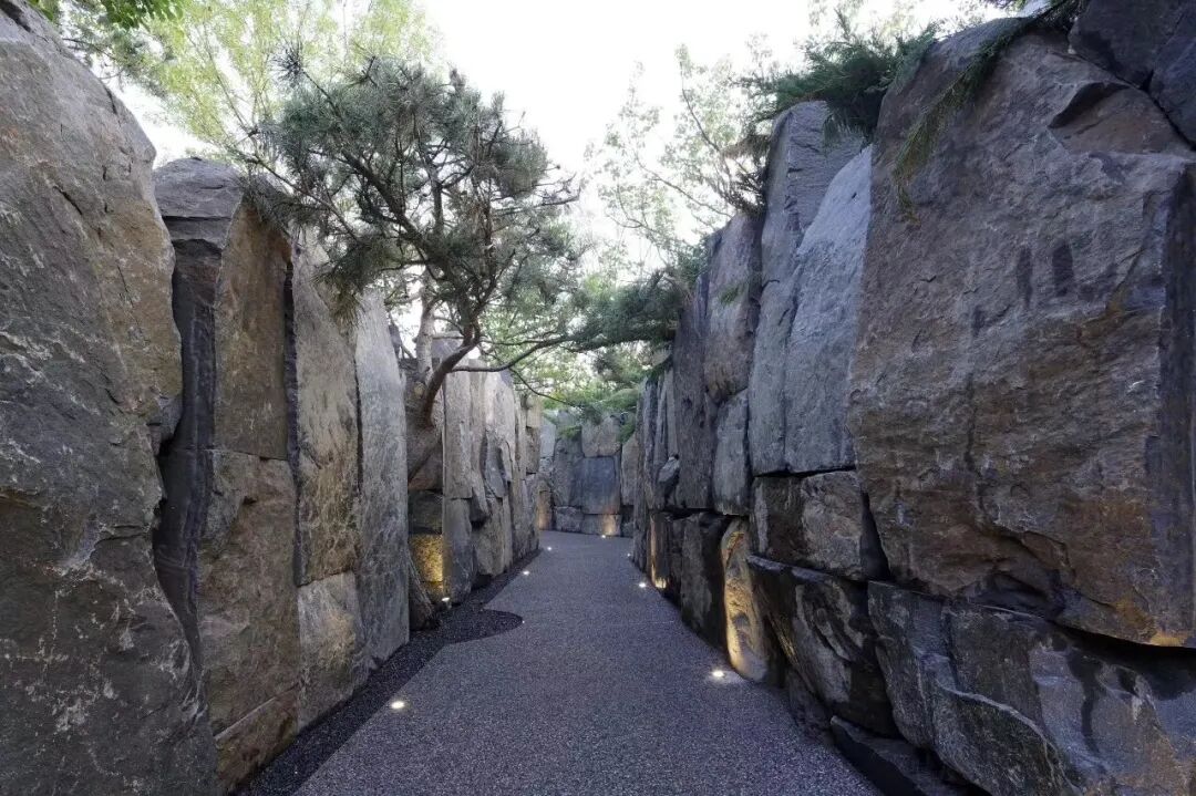 结合山石营造主题空间,松的苍劲山石的刚硬与相辅相成;