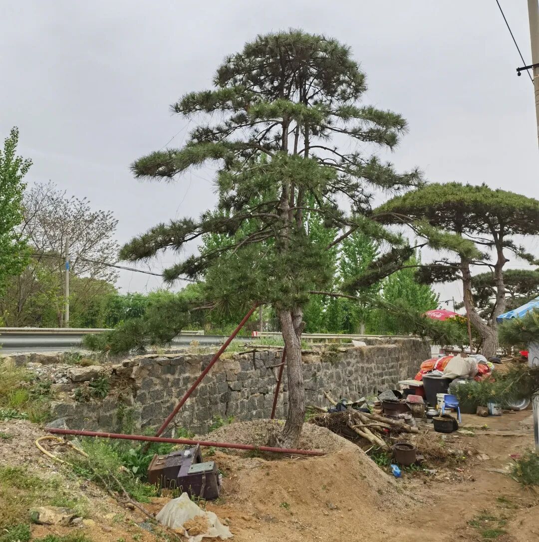 与景墙、置石结合,松的形态可斜飘,可高挺