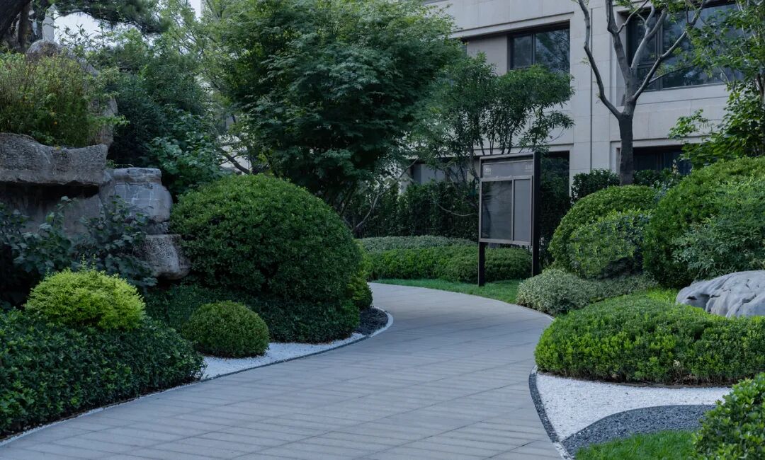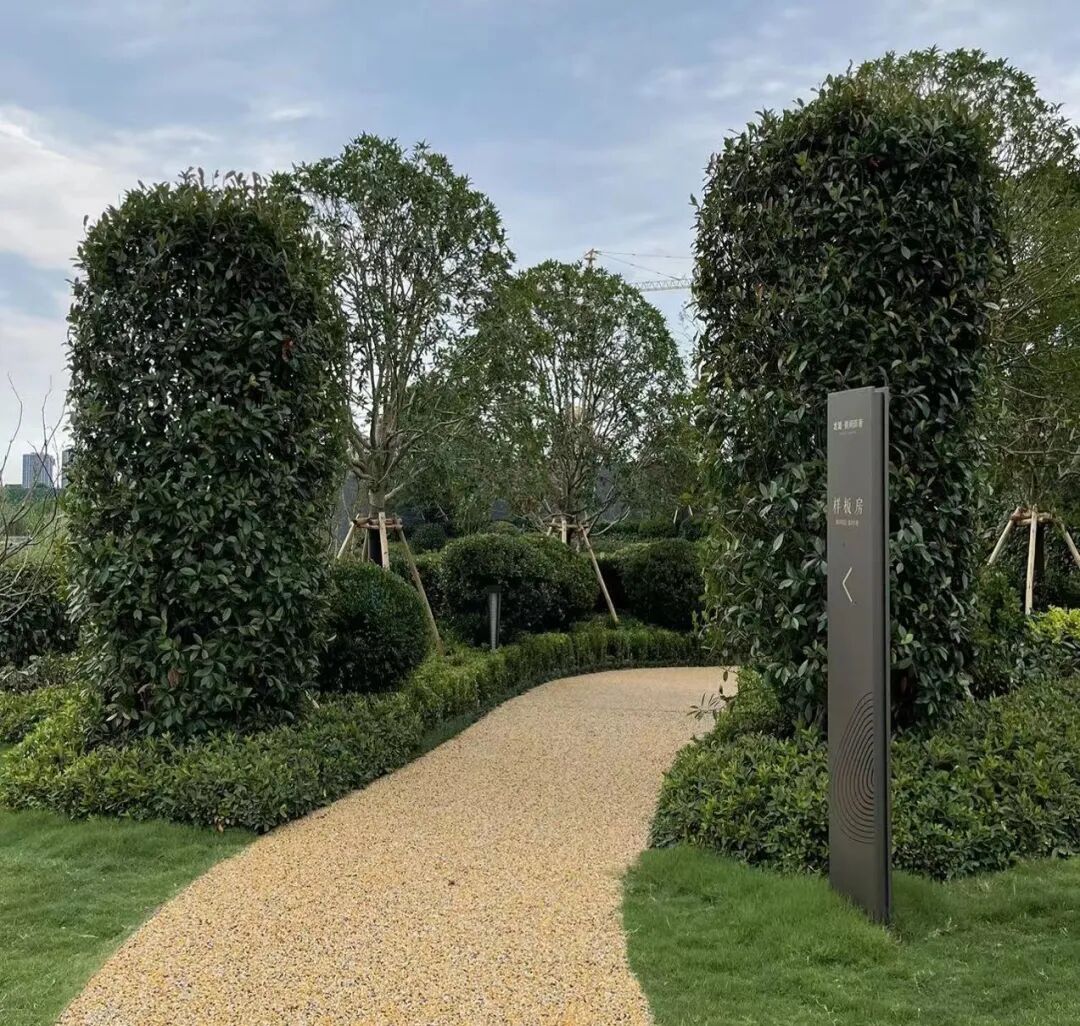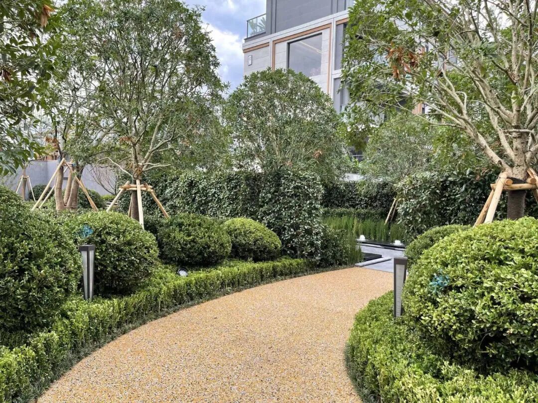 ---砾石做剪形绿篱的收边,更能清晰轮廓,质感的反差更显细节和品质;