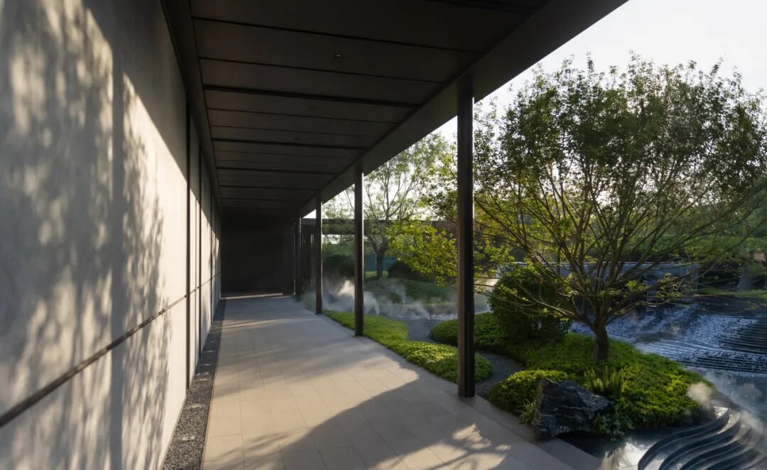 • 绿篱和水景之间的砾石带分割,既是软硬景之间的缓冲、过渡,又能很好的修饰水景和绿篱的边界,突显品质感。