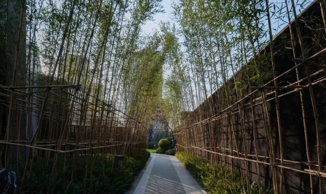 • 透过竹林,对景跳出来的一抹红,体现了设计的心思,端头一定要用球来收。