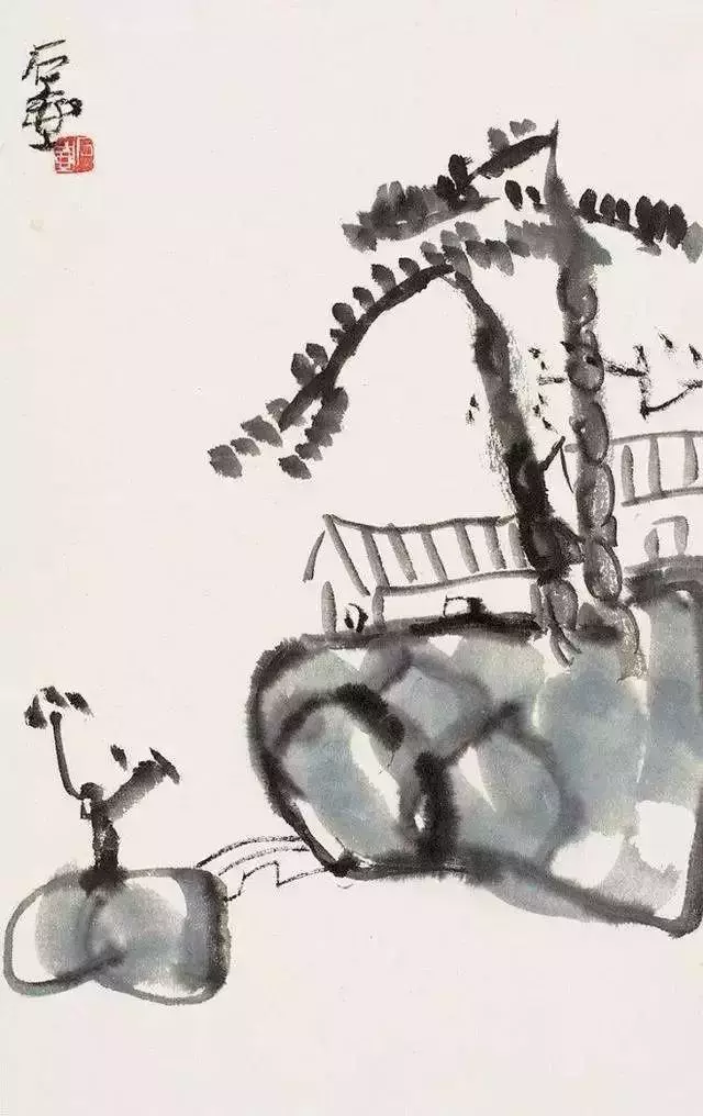 此外尚须参以七字:心、手、眼、笔、墨、水、色。色从于水,水从于墨,墨从于笔,笔从于眼,眼从于手,手从于心。心、手、眼须一致,笔、墨、水、色即生变化。