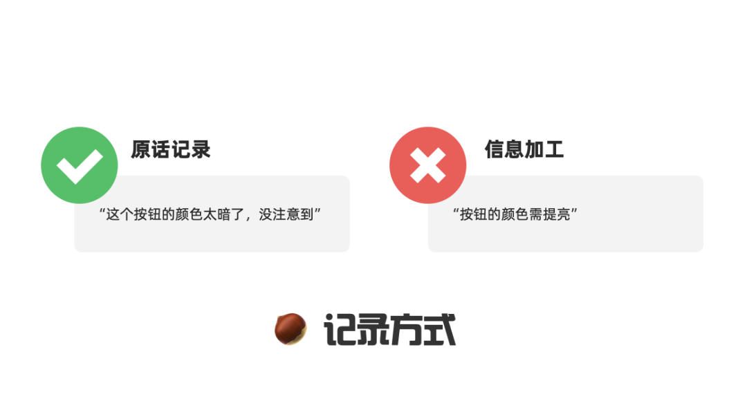 例如“你有什么好建议?你觉得怎么解决比较好”,用户无法准确回忆每个操作步骤,更好的做法是让用户直接演示给你,而不是询问看法;