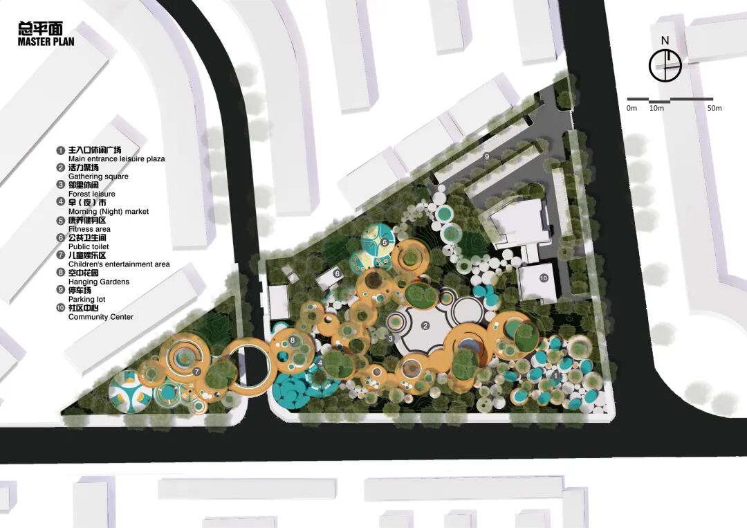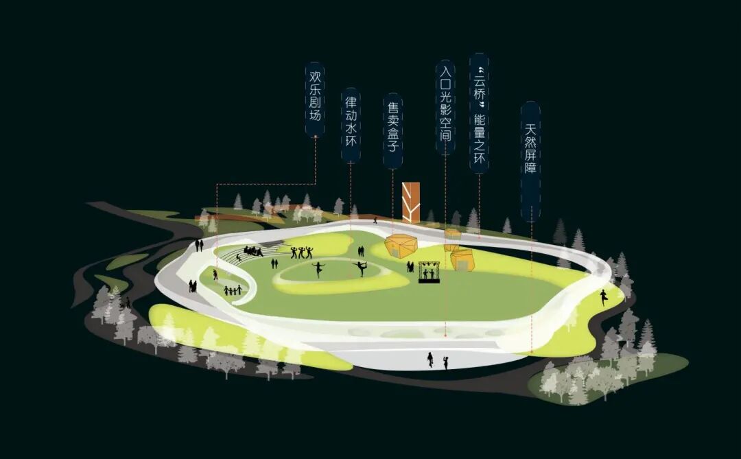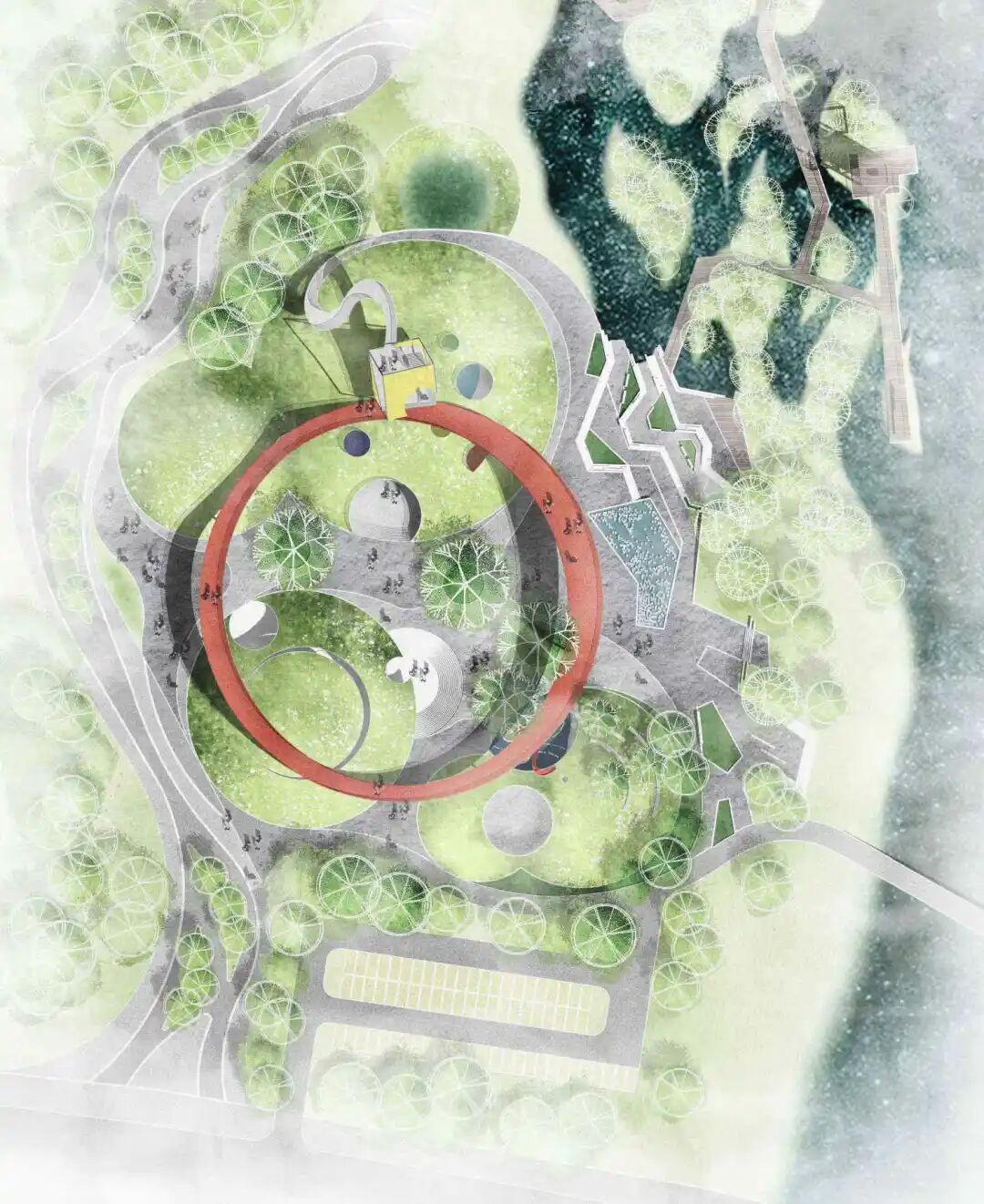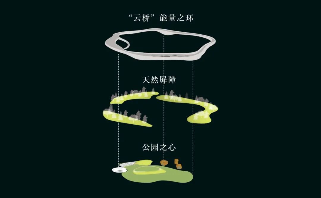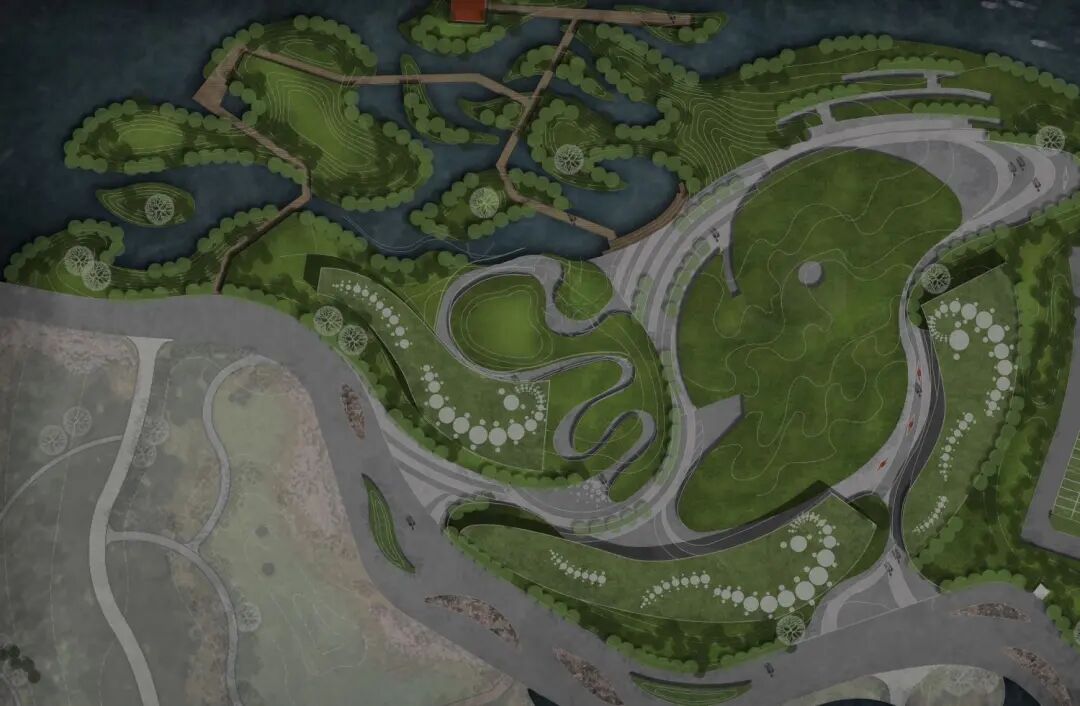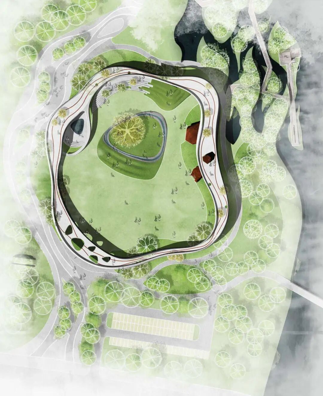 我们以公园生命力唤醒新城生活为我们的设计出发点。我首先考虑的问题是公园在这个城市中的职责、人们的需求、场地的自然属性,以及从更长的时间轴和更广泛的空间领域去考虑,它应该承担什么样的社会属性和使命?我们在保留原有的设计60%的基础上做了一定的创新,比如入口,主环路、停车场、湿地、瞭望塔,木栈道,我们没有改变,同时我们有意去创造一个向心围合的极具凝聚力的空间,自然斑块与周围发展的力量隐隐呼应,渗透的张力与自然形成进退变化的曲线,进而形成集聚周围环境视点的能量之环,我们从感知自然、场所精神、人的需求三个维度思考如何孕育出这个环形的、渗透的、魔力的、地标空间,它必将激活地块唤醒新城生活,同时我们希望它成为港城向世界展示上海魅力和新城活力的名片。