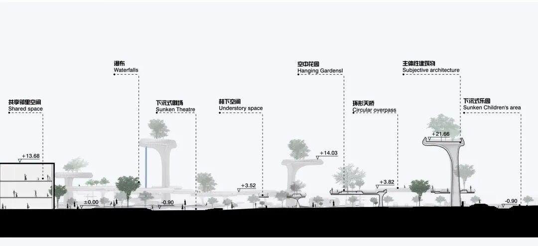 本次设计我们想要换一种视角,通过各种不同的窗口与这浪漫的场景来一次邂逅,将景观本身变成一个窗口,一个以独特的视角去观察四周的窗口。同时基于场地的区位,其位于临港新城的核心地块,也将是新城对外展示的重要窗口。