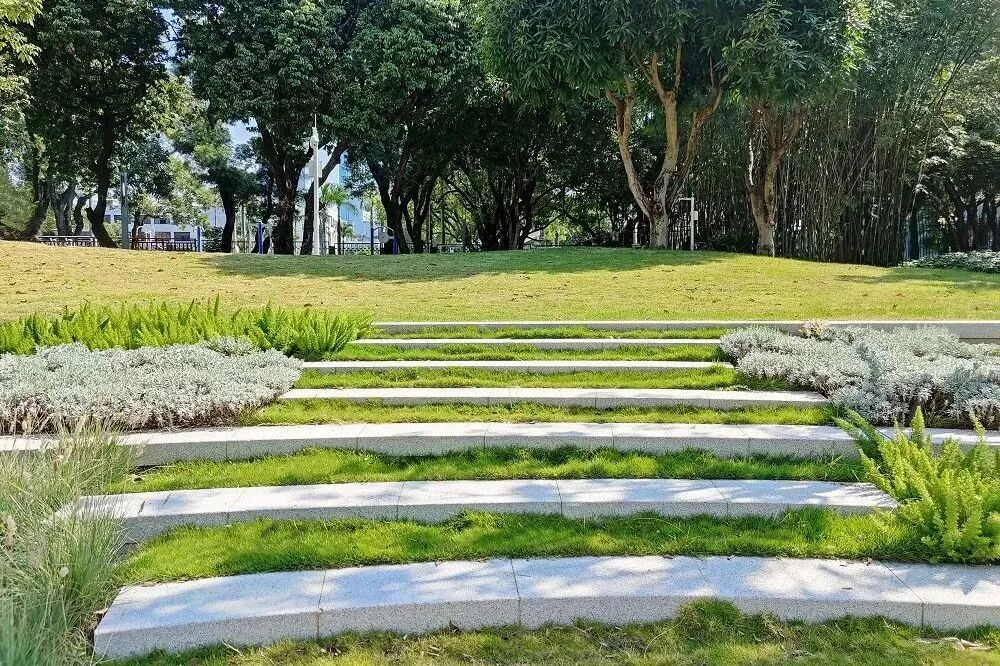 (4)汀步间植草的,草坪土面(草根)应与汀步持平,不得低于石材面层,防止崴脚。