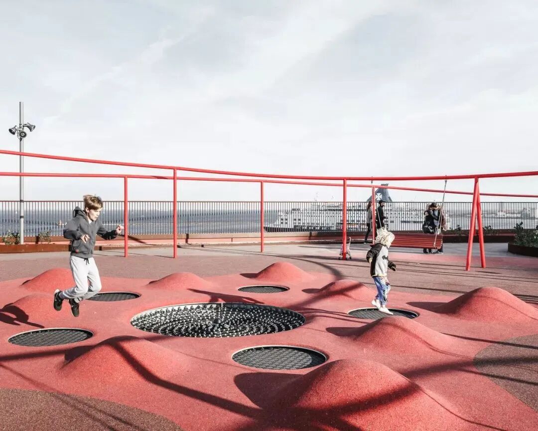 (2)塑胶地垫施工安排置于大面施工完成后,垫层浇筑需设置1%坡度;