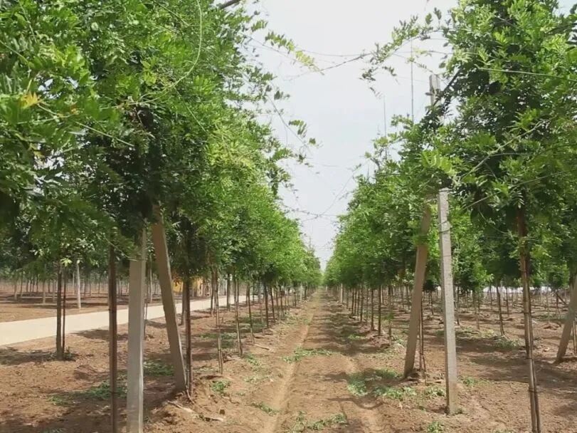 (4)棕榈科等植物,土球应比地径大10-20cm,土球包装完整,且种植效果必须满足要求;(5)树形完整,无病虫害,一级分支3支以上,二级分支6支以上,不偏冠;