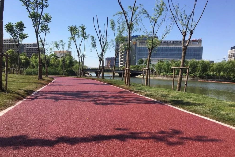 (5)塑胶面层不同色块之间的交接边缘线要自然顺畅,确保图案美观。