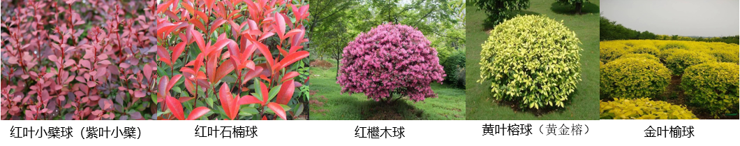 (3)球类:要求修剪后规格达到设计要求球型饱满、不脱脚、无空洞、长势良好,无病虫害。
