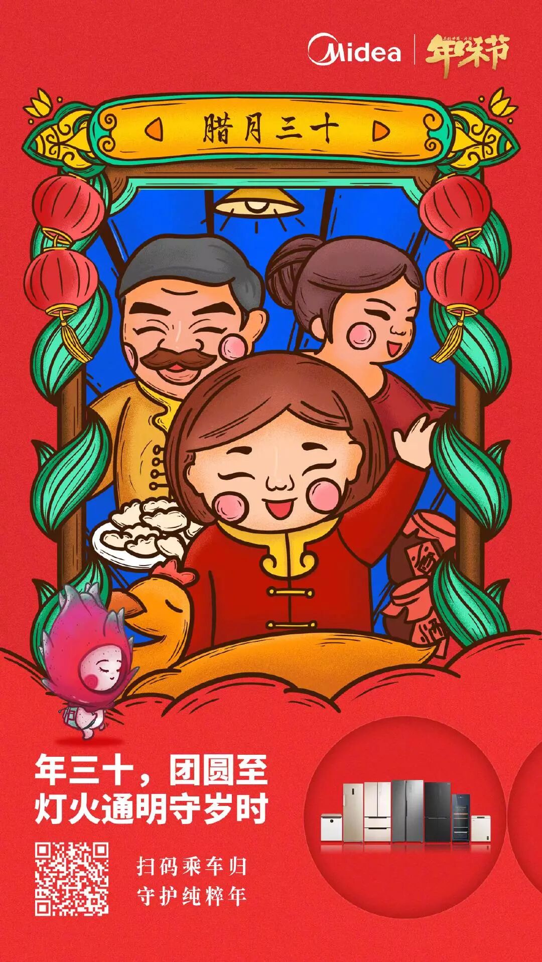 把酒言欢共开怀,美的冰箱年味节,祝大家今夜除夕暖更情