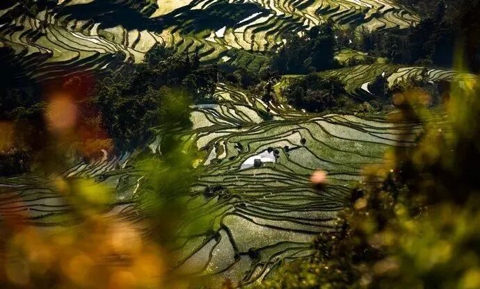 ◆ 哈尼梯田层层透亮,云雾掩映,扑朔迷离。