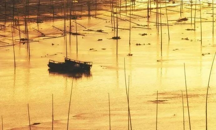 一人,一网,鸥鸟掠过,渔歌唱晚。