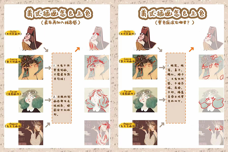 此次课程不仅有造型、配色等基础知识,还有当下非常受欢迎的美式插画、古风插画等多风格教学。在满足不同学员需求的同时,也能打造一套质量过硬的绘画作品集,为你的求职面试增光添彩。