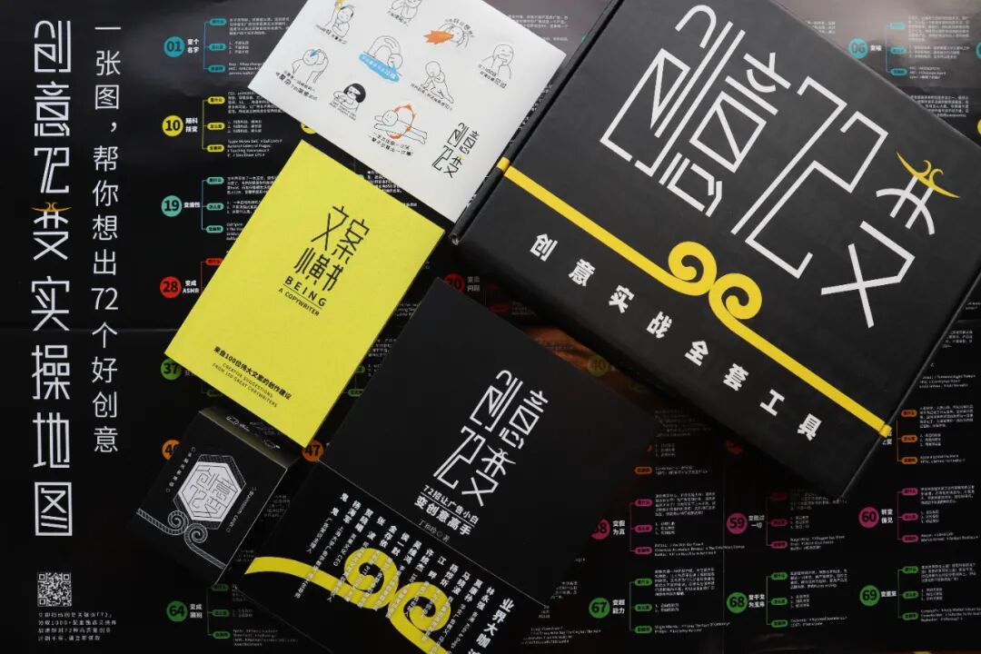左右滑动:查看全套《创意72变》的2本书1盒卡1张地图的实拍图,注意目前还送宝典《文案小黄书》。