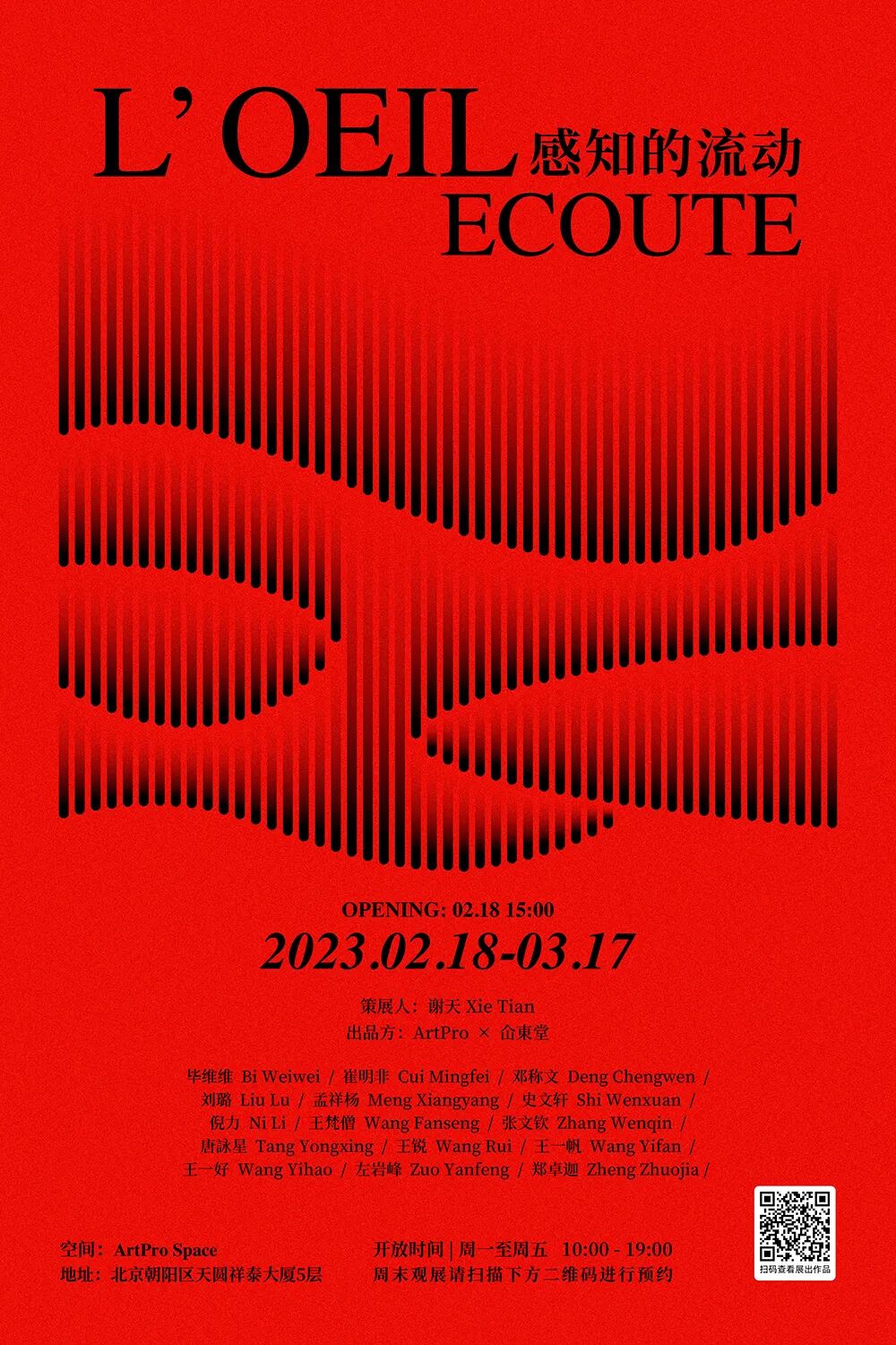 本次展览由仚東堂×ArtPro联合主办,策展人谢天策划,将呈现15位青年艺术家的20余件作品,旨在从现实与虚拟、具体与抽象的多重状态中,直抵人们的神经系统,以反思、碰撞、延伸等多元形式,紧密结合当代性精神与文化,以充盈心灵性的艺术作品让游离的感知重新被赋予秩序。在风格面貌各异、节奏抑扬顿挫的群像合奏之中最终得出感悟,绘画亦可倾听,音乐亦可静观,从而审悉感知的流动。