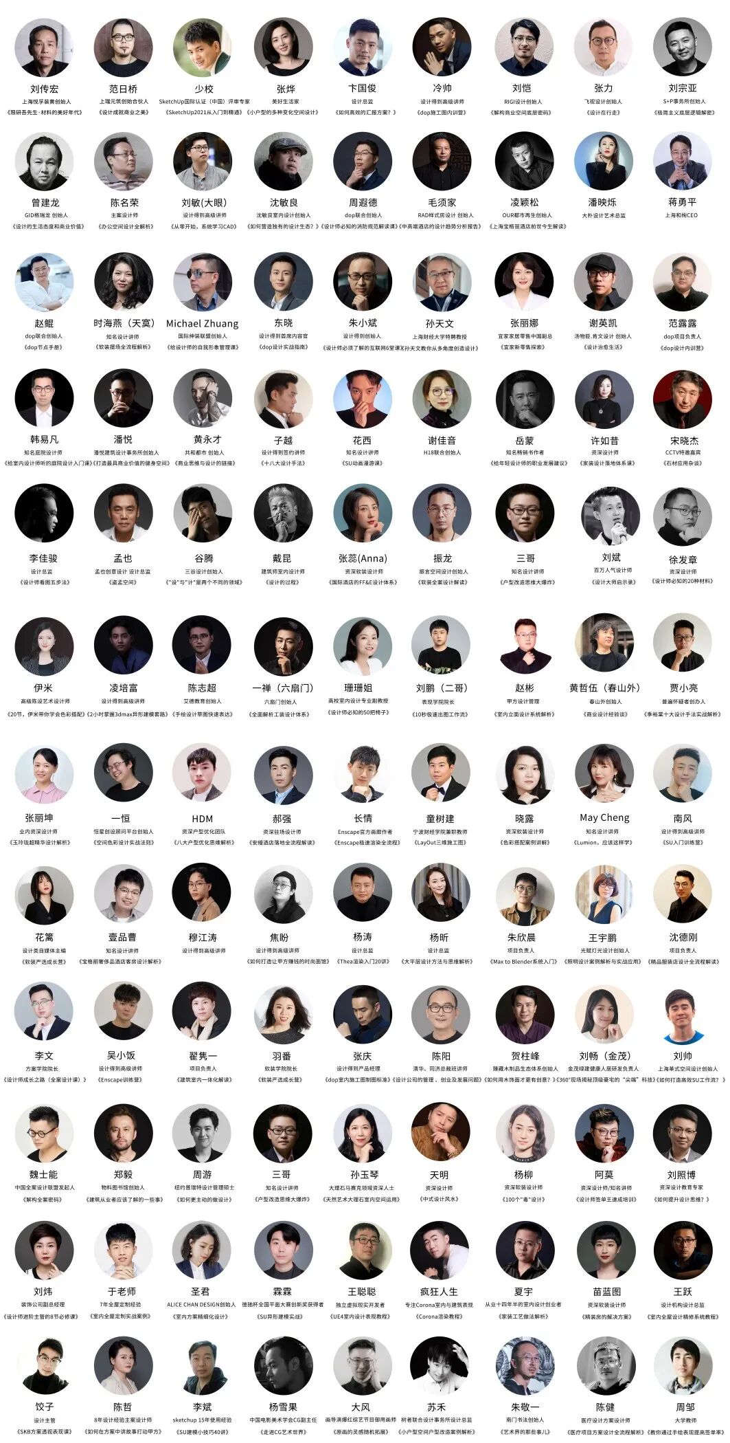 当然,讲师团中也不乏像dop、睿集、飞视、上瑞元筑等国内一线设计公司的创始人。不管你是初、中、高哪个阶段的设计师,在这里都能找到你需要的知识。