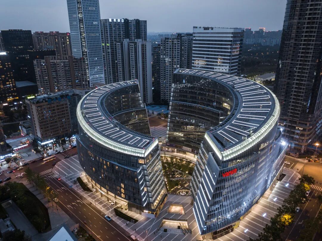 项目主设计邀请知名建筑设计事务所LLA创始总裁Pablo先生亲自操刀,结合天府之城城市独特标志“太阳神鸟”,将两栋相对的弦月形塔楼围绕着中央椭圆形庭院展开,宛如一对灵动的双鲤鱼在池中游弋,同时传达出创新、合作、开放、融合的核心理念。高新创合中心凭借其独特的建筑特色,获得2022AMP建筑奖及BLT 建筑设计奖。