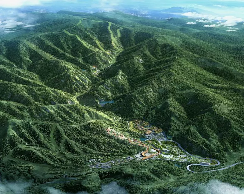冬奥会延庆赛区建筑为分散布局,不破坏山型不破坏森林的原貌,建筑景观悄无声息地融于一片自然山林之中,体现出中国山水文化的内涵。