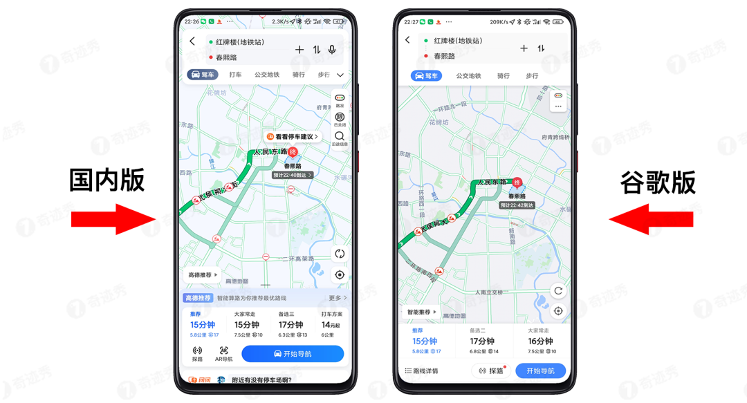 可能有小伙伴会说谷歌版应该阉割掉部分功能不如国内版好用。其实国内版有的功能海外版一个不差,语音导航、3D地图、电子狗应有尽有。两者实际使用效果相同。