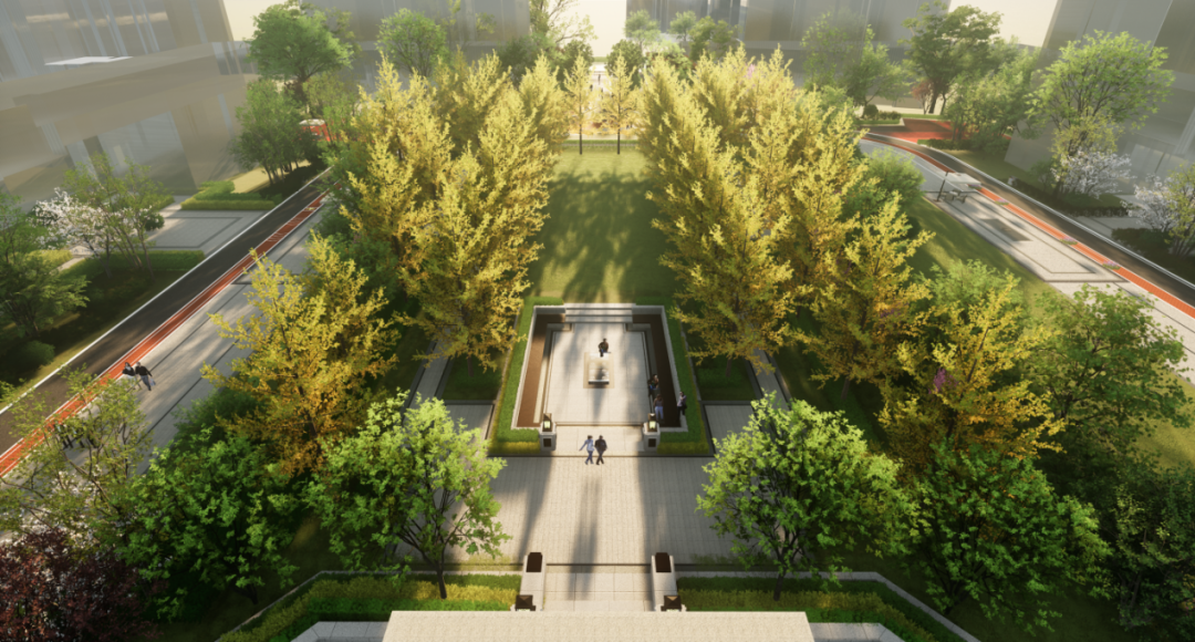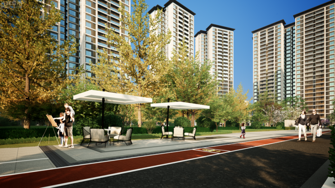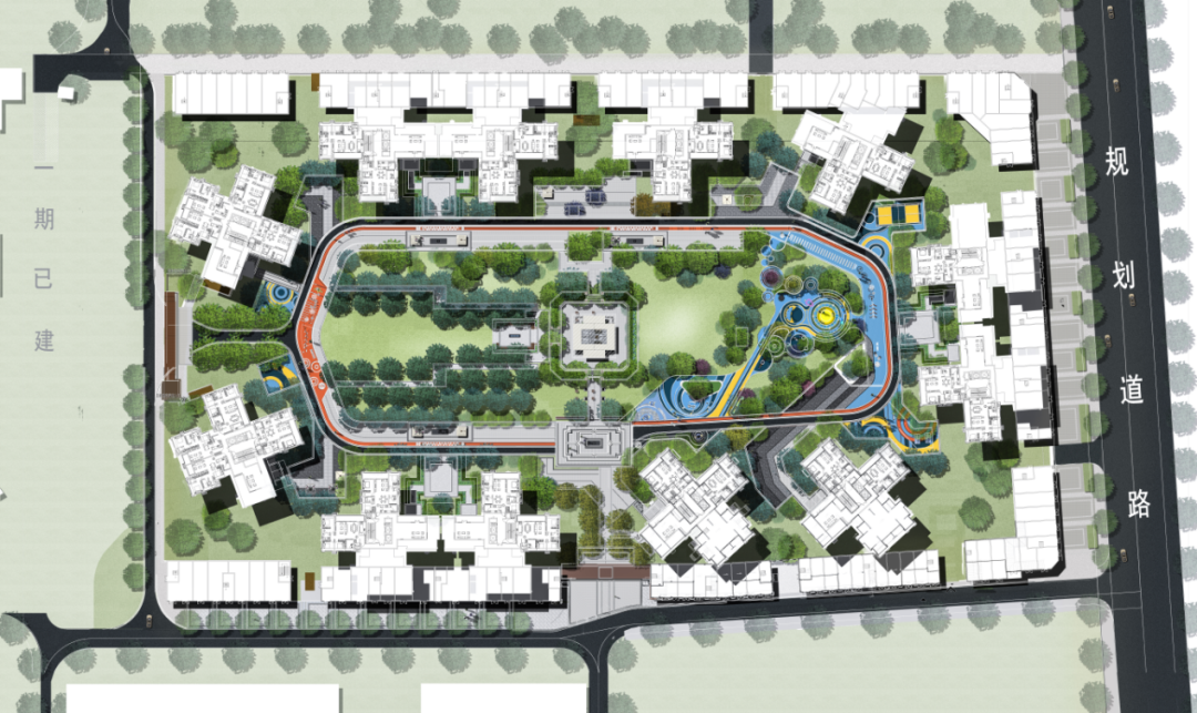 从迎宾轴线的归家礼序,到植入“锦云奇遇”的410m生态跑道,再到“尊崇门庭、仪式亭阁、林荫雅境、暖蓝乐园”的四重主题空间,古典与现代结合的全龄段欢憩场景由此形成,哪怕仅是远眺,也藏不住择居于此的惬意与满足。