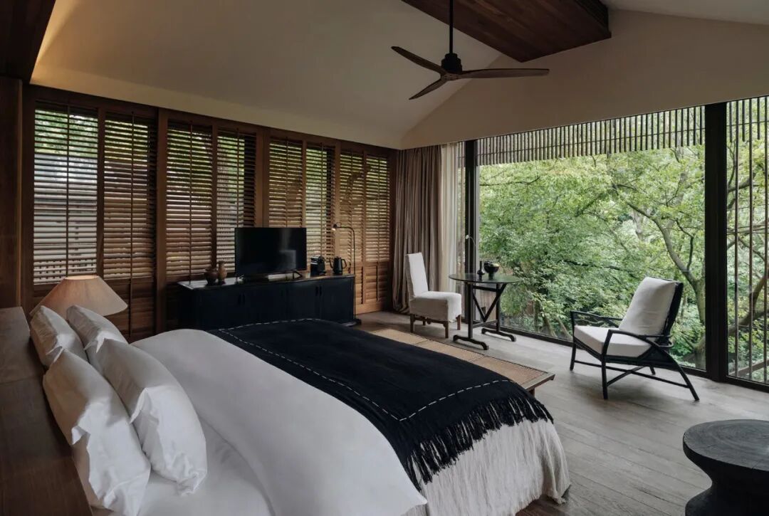 在安吉的山川乡,有这样一处随山势地貌而建的院落式山居。以内敛谦逊的姿态,取“设计后退”的手法,采用在地材料,让建筑融化于自然山水中,仿若自成一脉的避世村落,柔软温婉。这方40余亩的隐世场域,分为望山、听岚、隐溪、水镜,组成12栋山居院落,以梯步相连,高低错落。而每个小院,又包含4个房间,且每间客房都“看得见风景”!像极了一个个小家庭,独立、有趣却融合相拥。