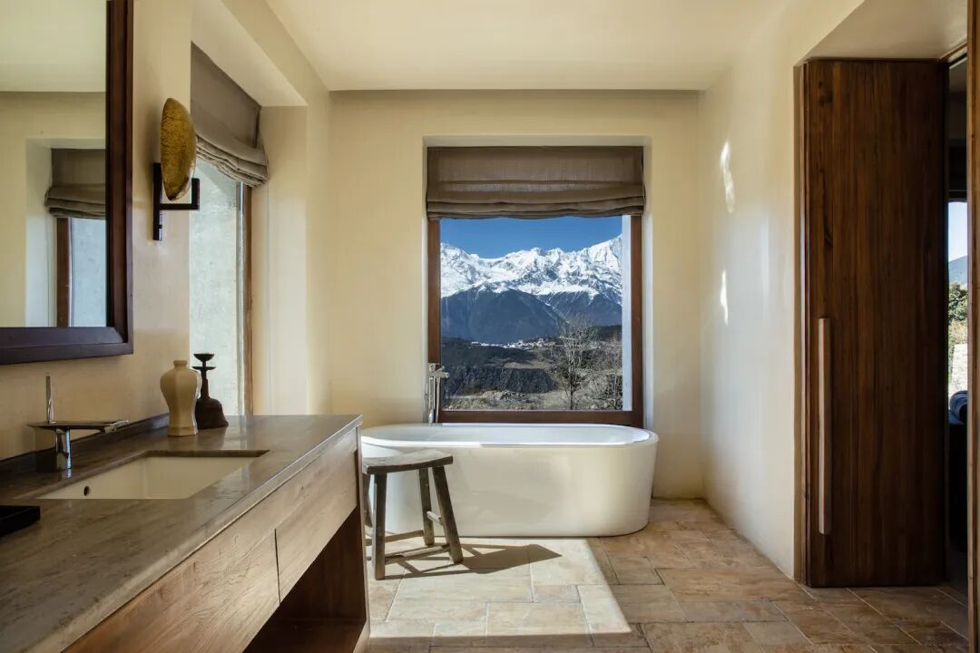 梅里雪山,最高峰卡瓦格博峰,海拔6740米,至今无人征服。梅里雪山,也是藏传佛教的朝觐圣地,藏区八大神山之首。2018年末,在梅里雪山对面、海拔3600多米的雾浓顶村,一座偏现代风格的建筑出现在了人们的视线中,这就是既下山·梅里酒店。