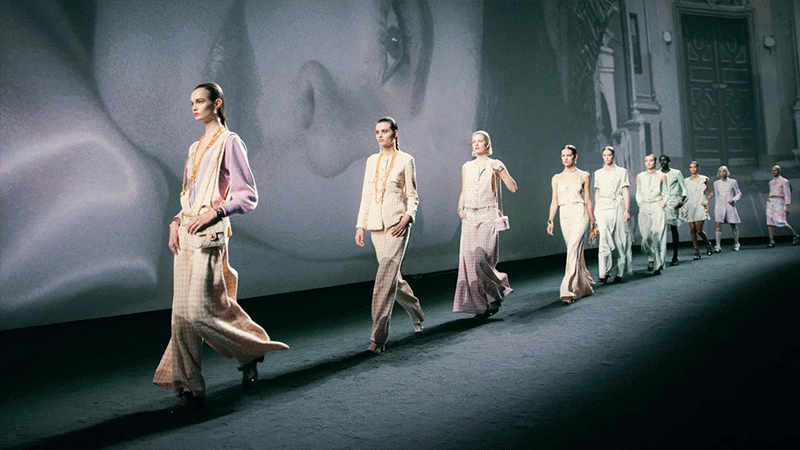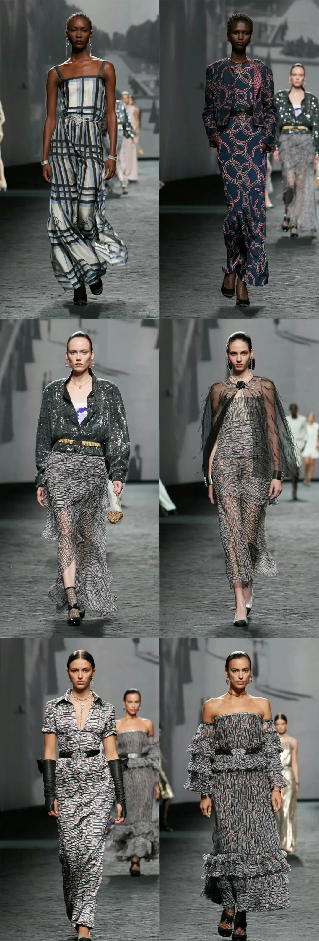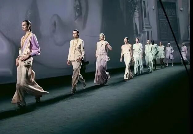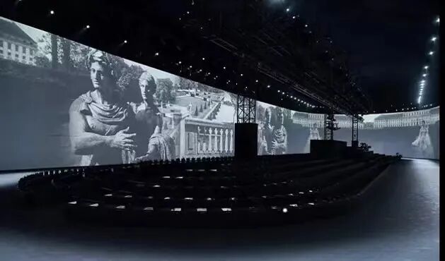 从大秀宣传影片开始,这季就让人沉浸在极富电影感的氛围中,轻盈优雅的时装加上360°环幕影像秀场,构思出穿越时空的迷人图景,以Rianne van Rompaey开场,Vivienne Rohner闭秀。