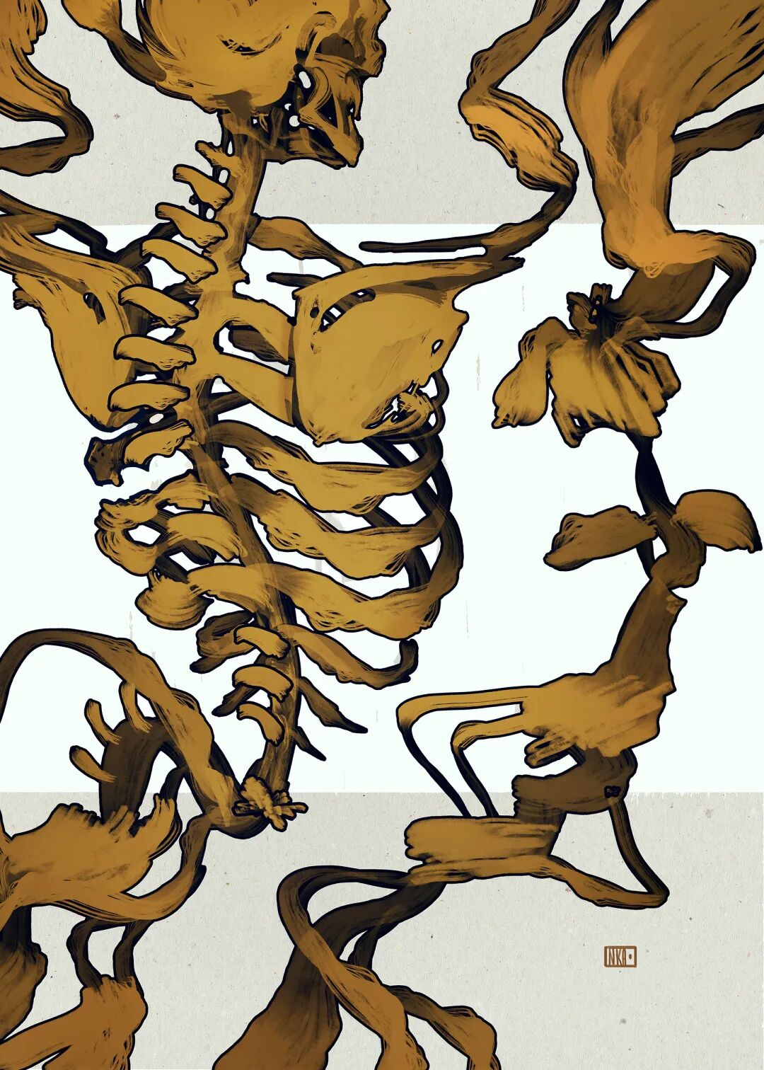 Natali Kayurova喜欢使用黑金配色以及几何感十足的线条轮廓,创作出高级感满满的作品,画面整体氛围神秘抽象,偏扁平风格化,《yellow mind》系列是此类型的代表作。她的作品充满了极致美感的古典气息,画风辨识度极高。