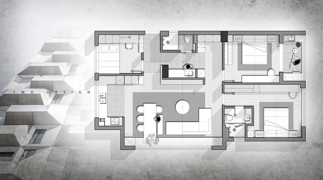 据说现在的设计师朋友们在谈单,或是跟客户讲方案时,还是直愣愣拿着打印的CAD给客户谈,还要一遍遍解释,这是柜子、这是飘窗、这是旋转楼梯…...也可以,但是没必要~