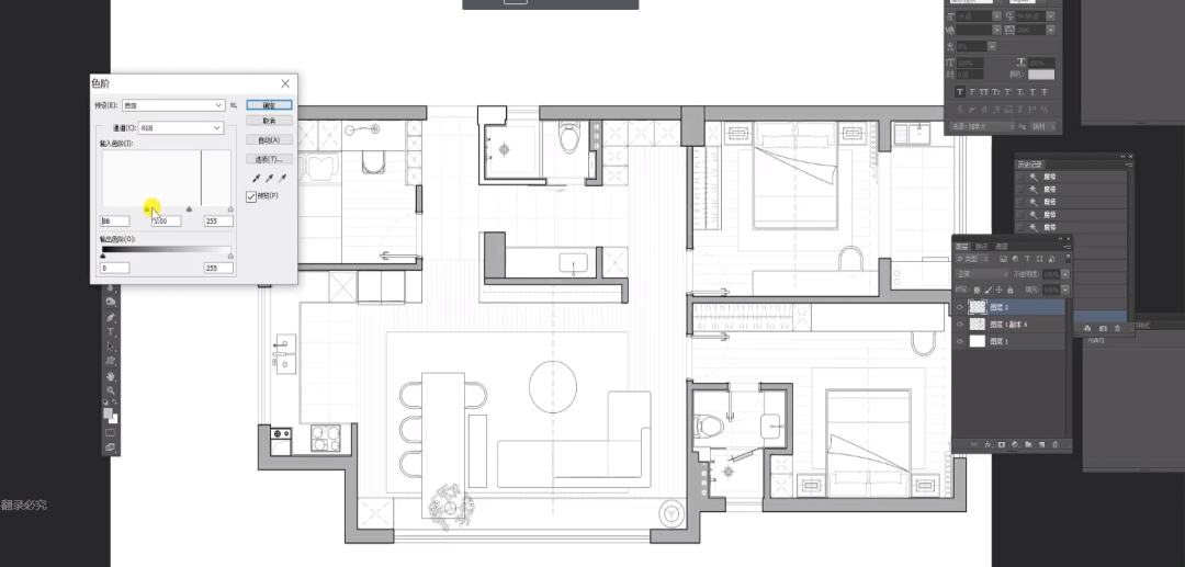 首先,导入pdf文件到ps中。清理杂线,当线型如果太细、够不清晰时,可以多复制几层后合并图层。