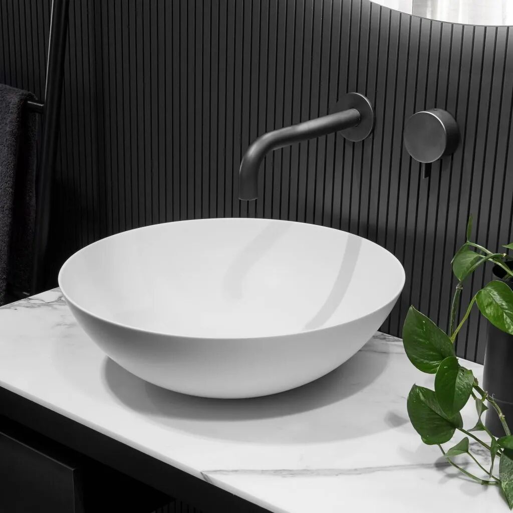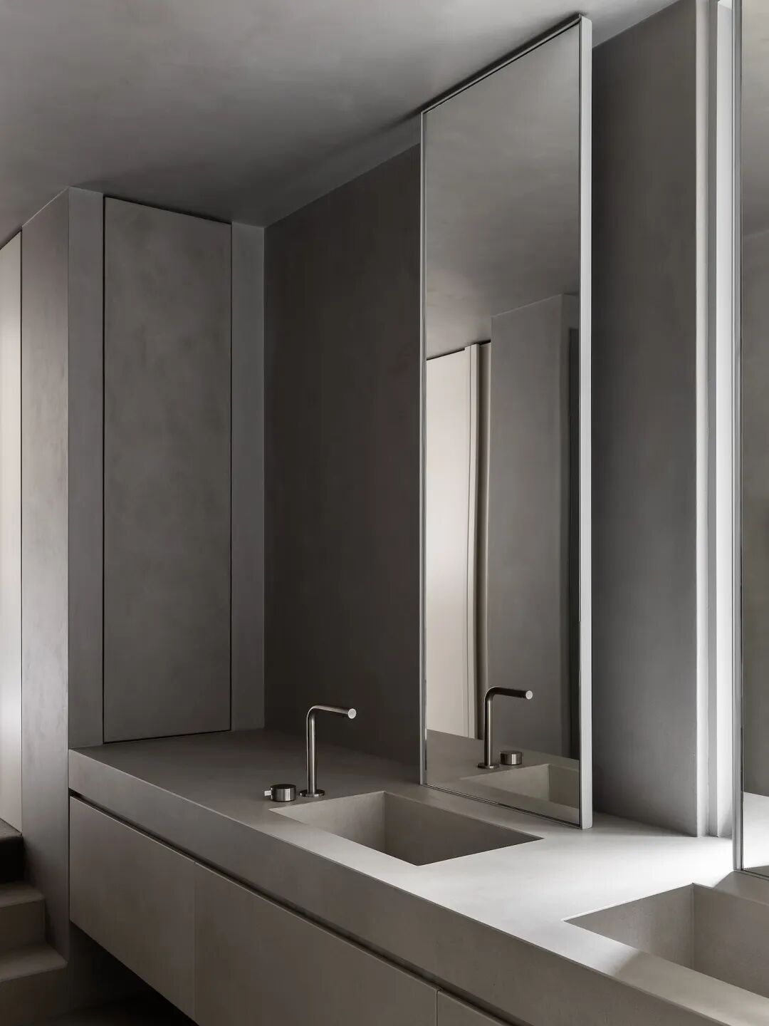 整个浴室由简单的几何造型组合呈现。浴室中的深泽盆式水龙头延续了功能性和精致设计的主线。同时配有 Bocci 瓷制梳妆台和壁灯,为浴室增添了一份温馨~