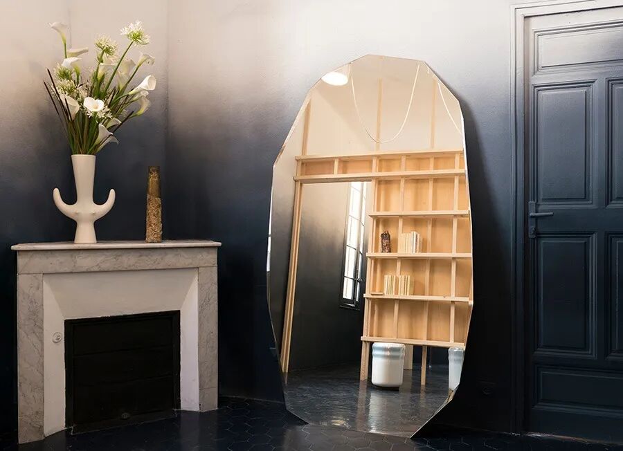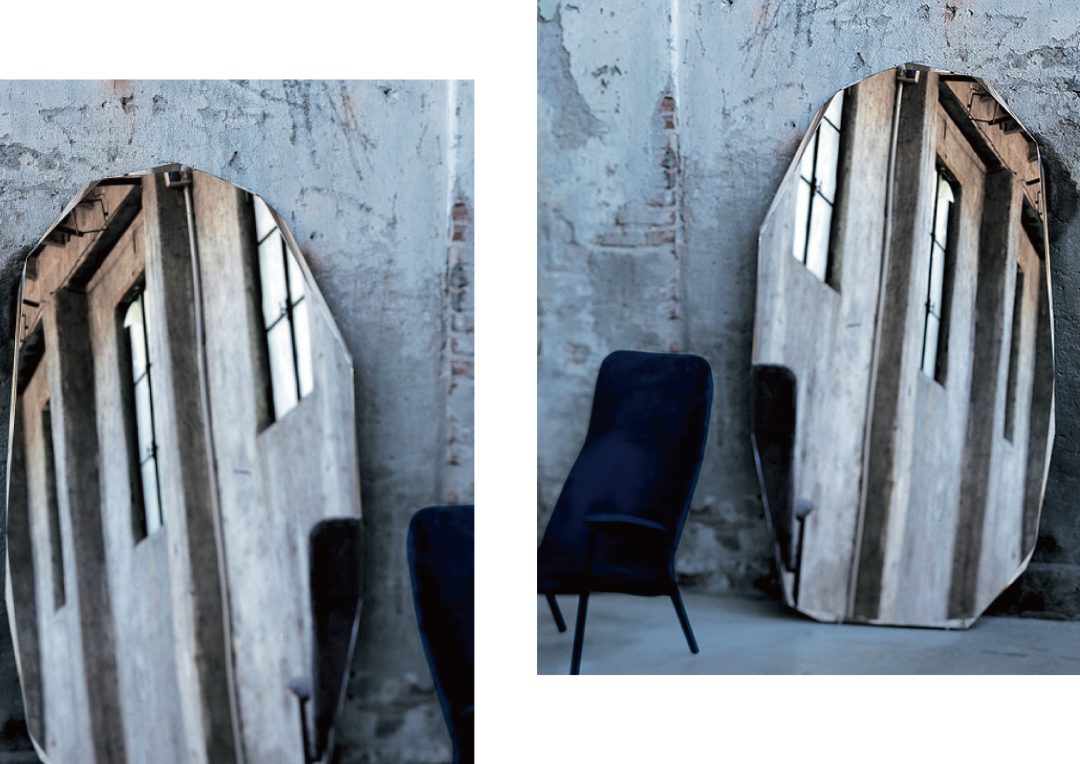 Kooh-I-Noor Specchi 小镜子是一面立镜,具有不规则形状的刻面周边和具有可变深度和倾斜度的特殊倒角,就像雕刻在带有刻面和斜边的岩石上一样。