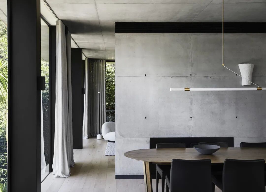 Powell & Glenn为这栋两层住宅选择了大胆、简洁的线条和原始、坚固的材料。在Canopy House内部,雕刻元素、环境照明和手工作品营造出温馨、轻松的空间氛围。木材、混凝土、玻璃和钢材的使用更加衬托了这种氛围。特别是混凝土的频繁使用,建立了内外平行性。