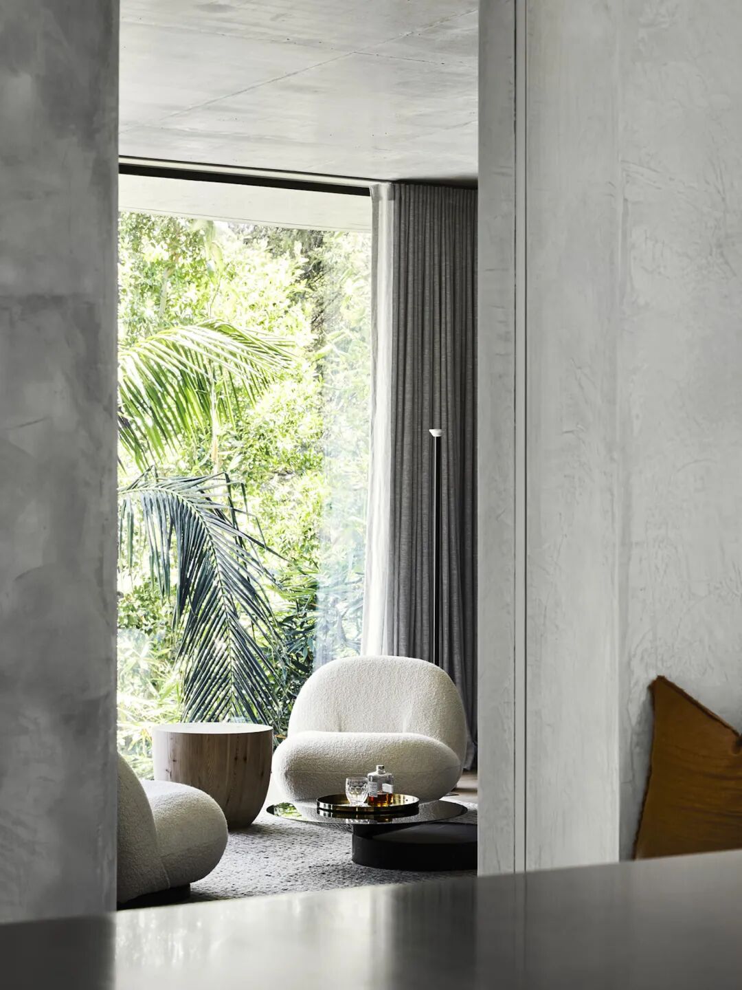 GUBI Pacha躺椅和Mark Tuckey Mini Mega Drum边桌的搭配创造了一种“漂浮在檐篷中”的奇妙体验感。