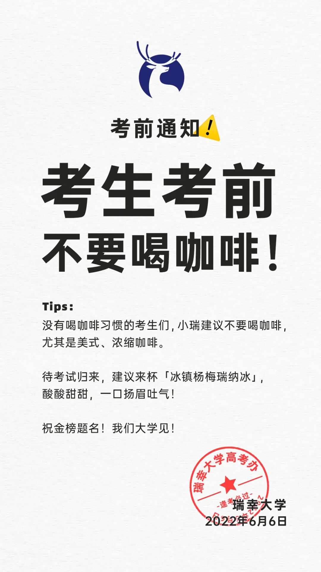 luckincoffee 瑞幸咖啡:【考前通知】考前不要喝咖啡