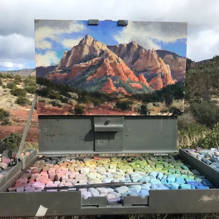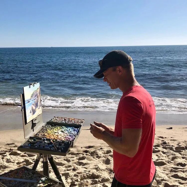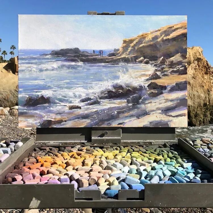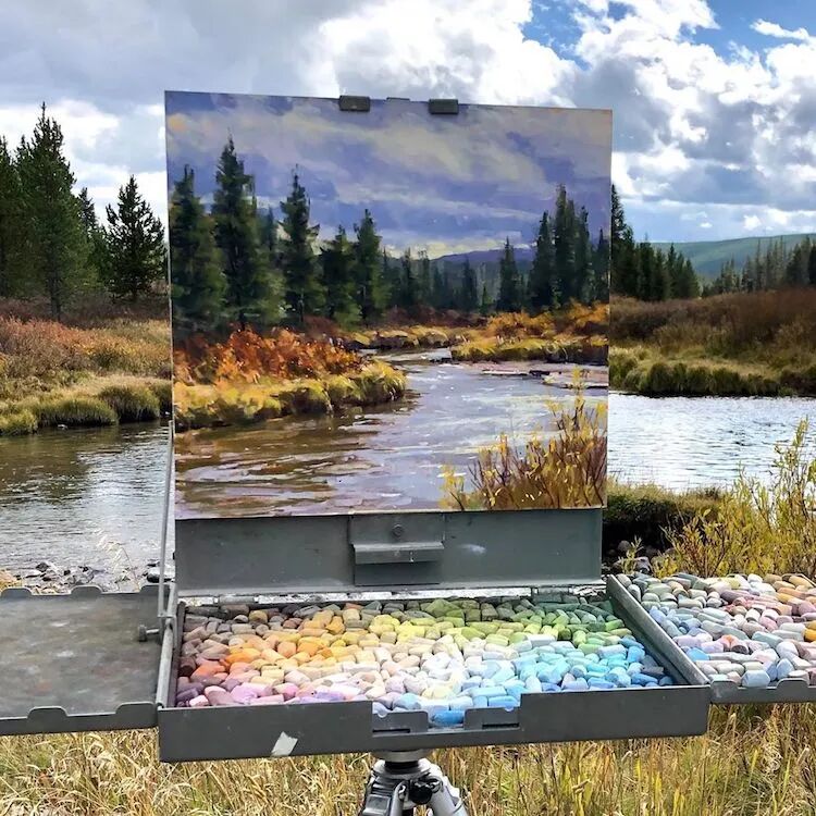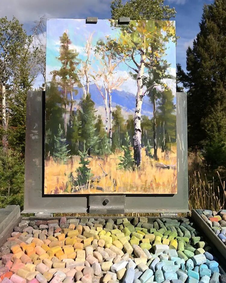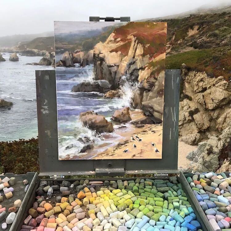 这位画家使用的绘画材料,不同于我们常见的丙烯和油画,而是色粉笔,通过精致的绘画,让作品看起来就像是一幅丙烯画作一样,这位画家描绘的风景作品以黄石国家公园的森林和拉古纳海滩的海滩为主,用活泼和鲜艳的色调,将目之所及的美景都捕捉下来。