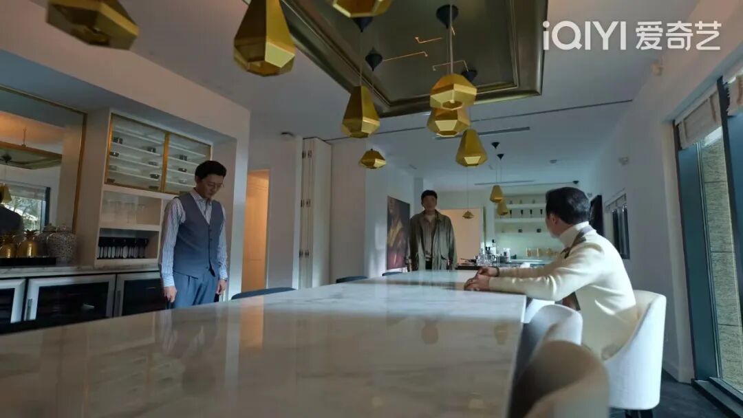 客厅内还设计了一个小吧台,日常高启强和小弟们喝酒很方便。