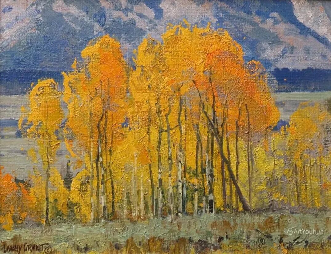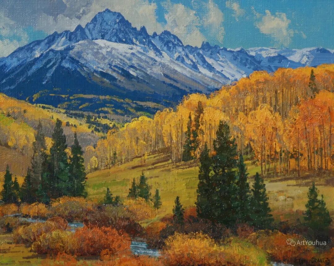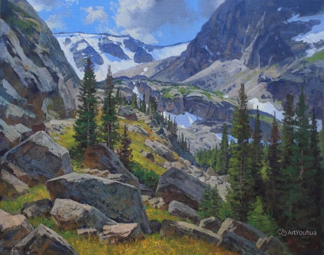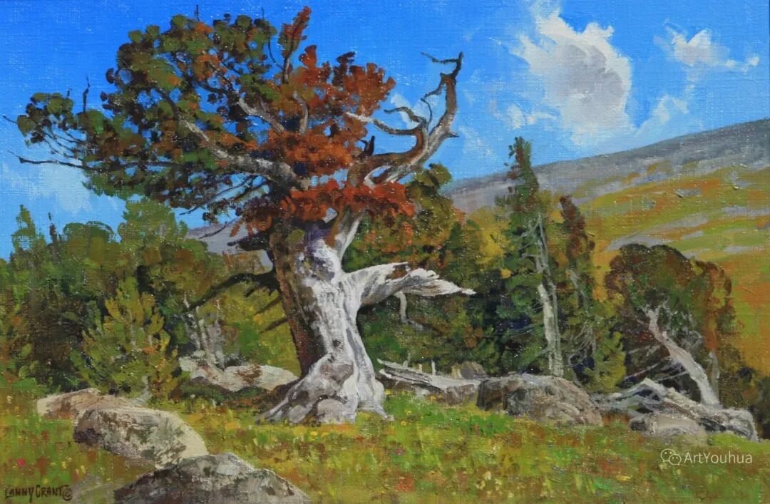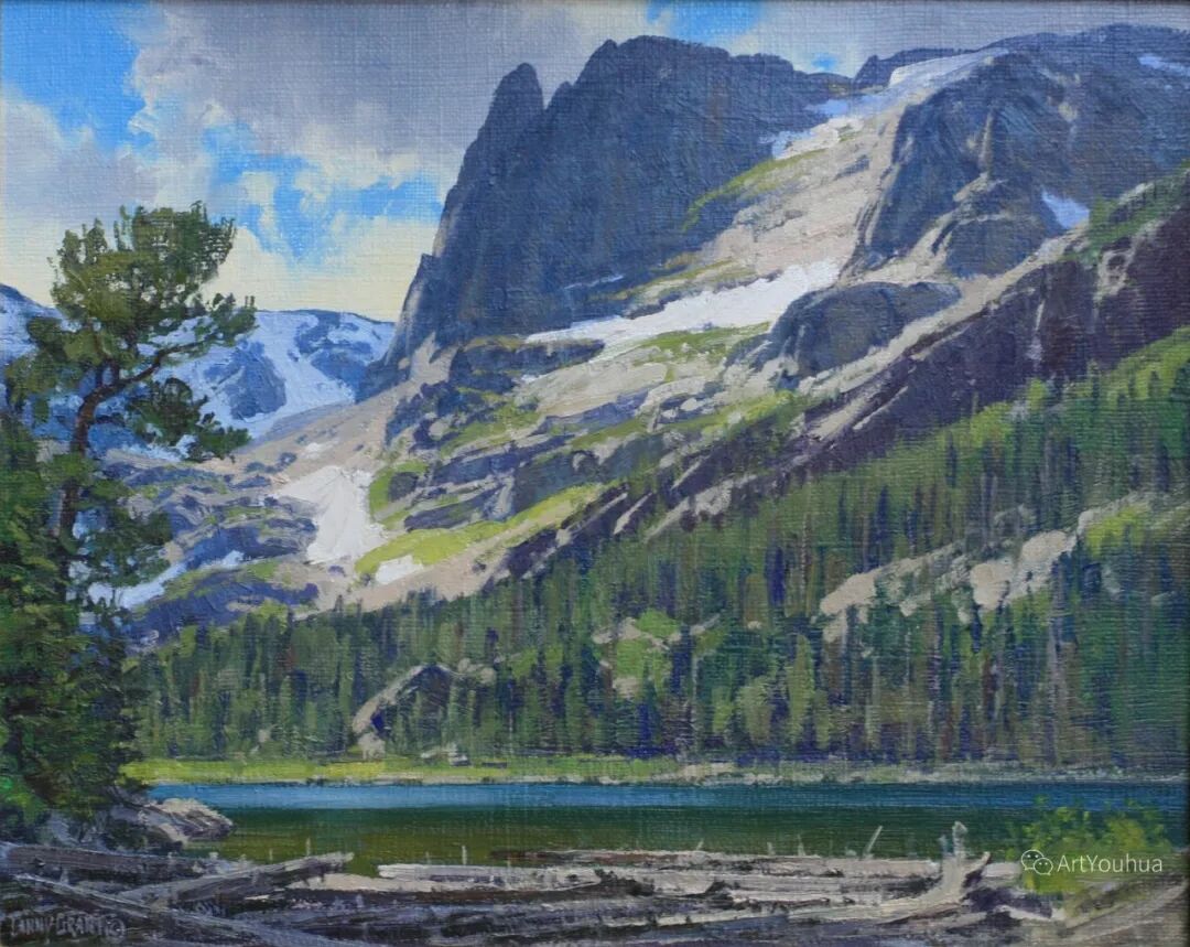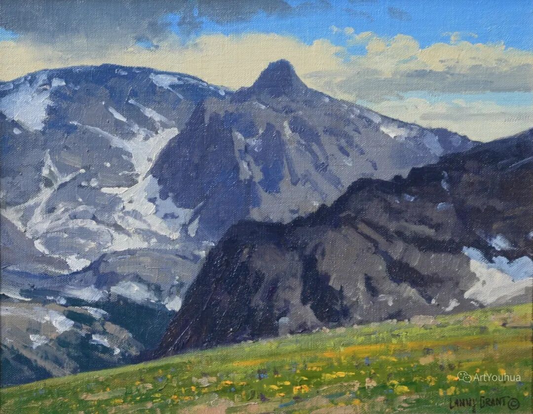 兰尼·格兰特(Lanny Grant,1953-),美国画家。他居住在科罗拉多州西坡小镇Silt附近--离他在父亲的桃子谷牧场长大的地方不远。家庭露营和钓鱼旅行变成了写生旅行,这是早期的艺术努力,因为兰尼对西部科罗拉多州的高地产生了热爱。大部分是自学成才,他在10岁时开始画油画,并通过专注的工作和实践发展成为一名优秀的艺术家。1965年,兰尼遇到了新墨西哥州的艺术家本·特纳,特纳画山地风景的能力给他留下了深刻印象。高中毕业后,格兰特于1971-1972年在科罗拉多州阿拉莫萨的亚当斯州立学院学习,在那里他获得了艺术史的知识并学习了生活绘画。