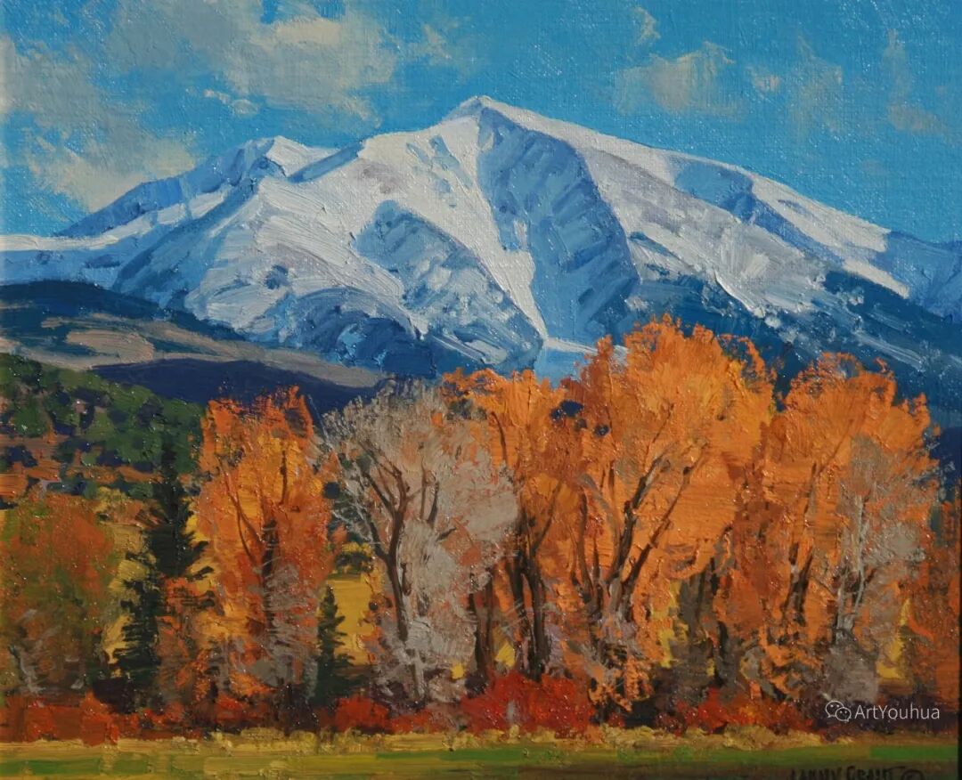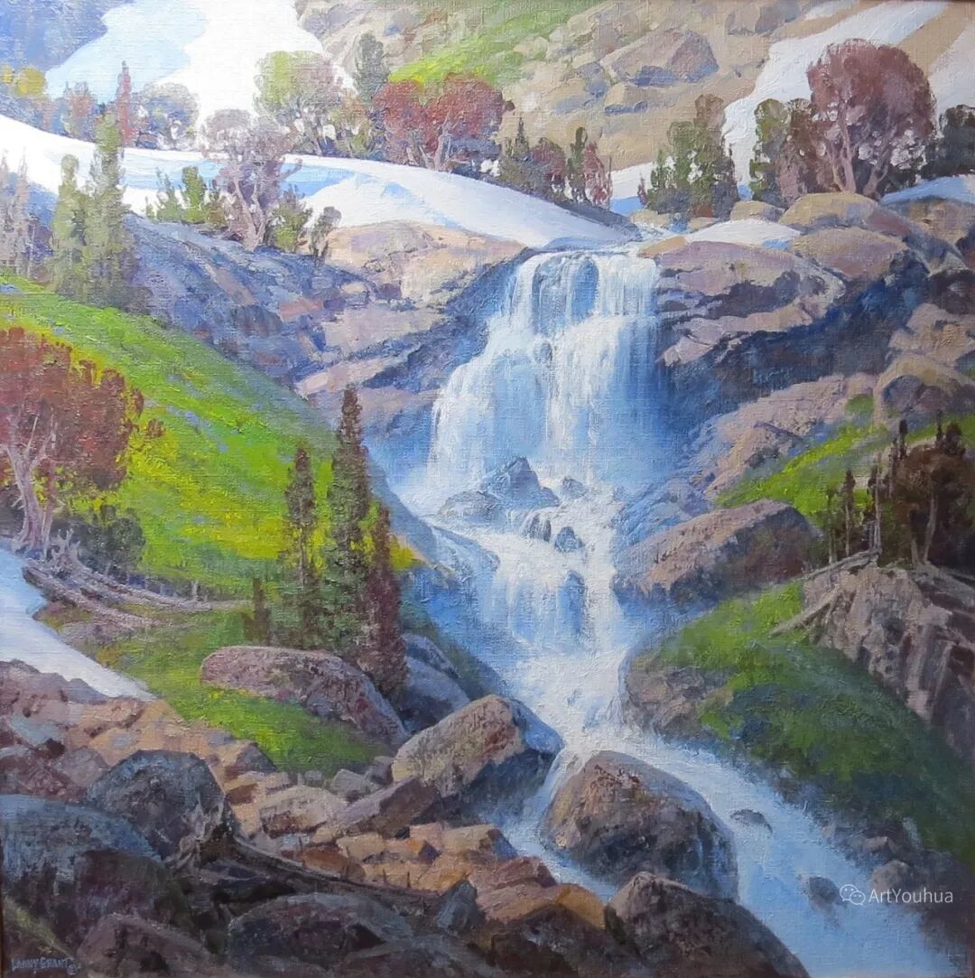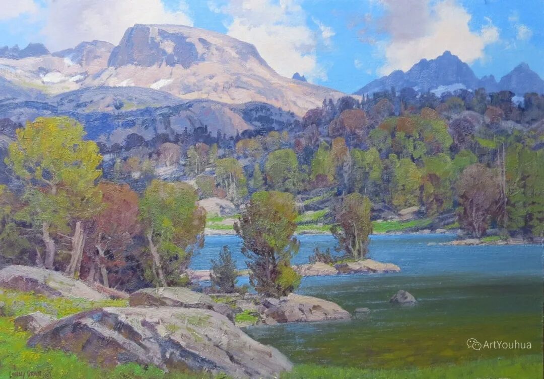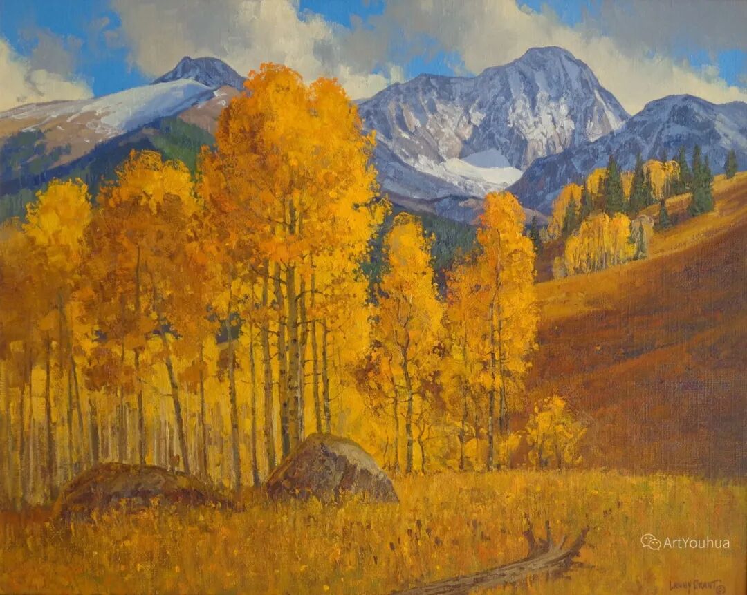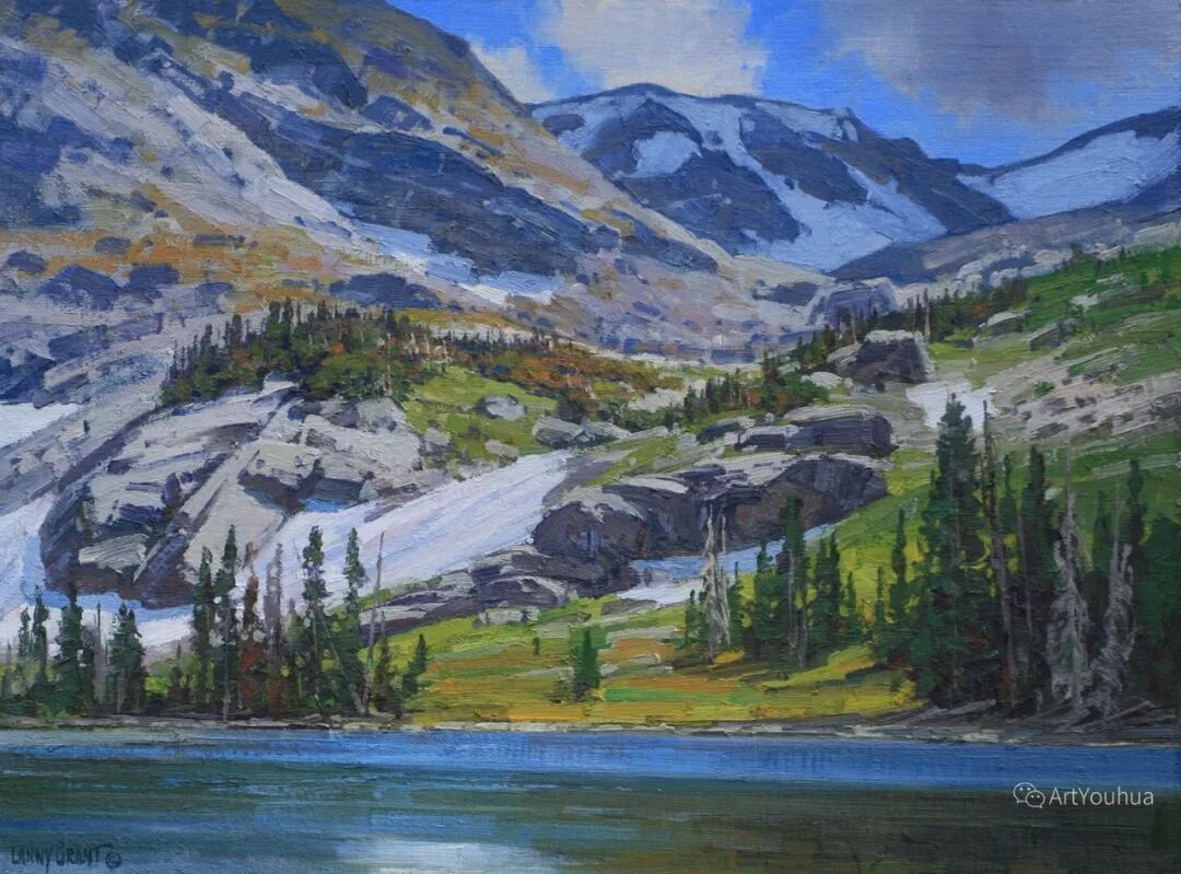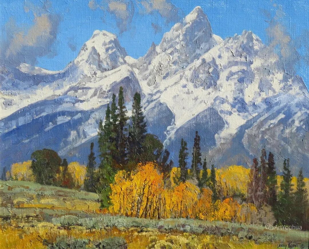 兰尼·格兰特(Lanny Grant,1953-),美国画家。他居住在科罗拉多州西坡小镇Silt附近--离他在父亲的桃子谷牧场长大的地方不远。家庭露营和钓鱼旅行变成了写生旅行,这是早期的艺术努力,因为兰尼对西部科罗拉多州的高地产生了热爱。大部分是自学成才,他在10岁时开始画油画,并通过专注的工作和实践发展成为一名优秀的艺术家。1965年,兰尼遇到了新墨西哥州的艺术家本·特纳,特纳画山地风景的能力给他留下了深刻印象。高中毕业后,格兰特于1971-1972年在科罗拉多州阿拉莫萨的亚当斯州立学院学习,在那里他获得了艺术史的知识并学习了生活绘画。